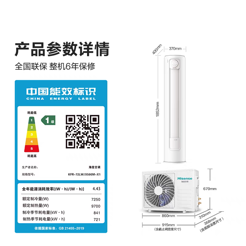 X1A X500M 海信空调大3匹p柜机新一级能效增氧新风空调KFR 72LW