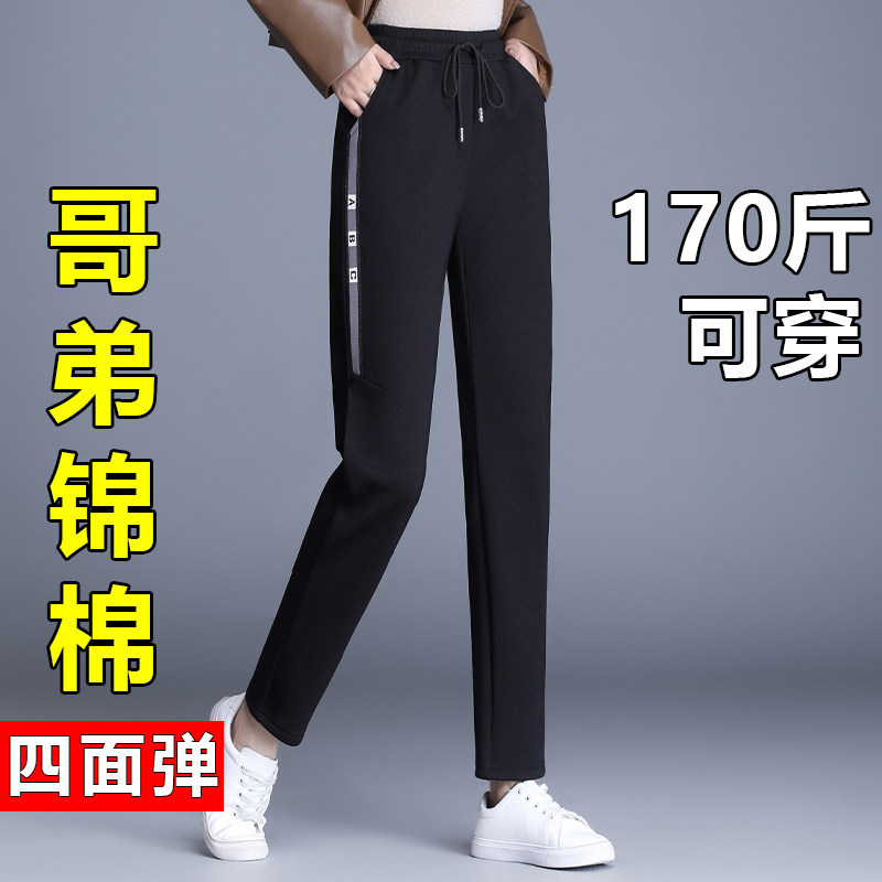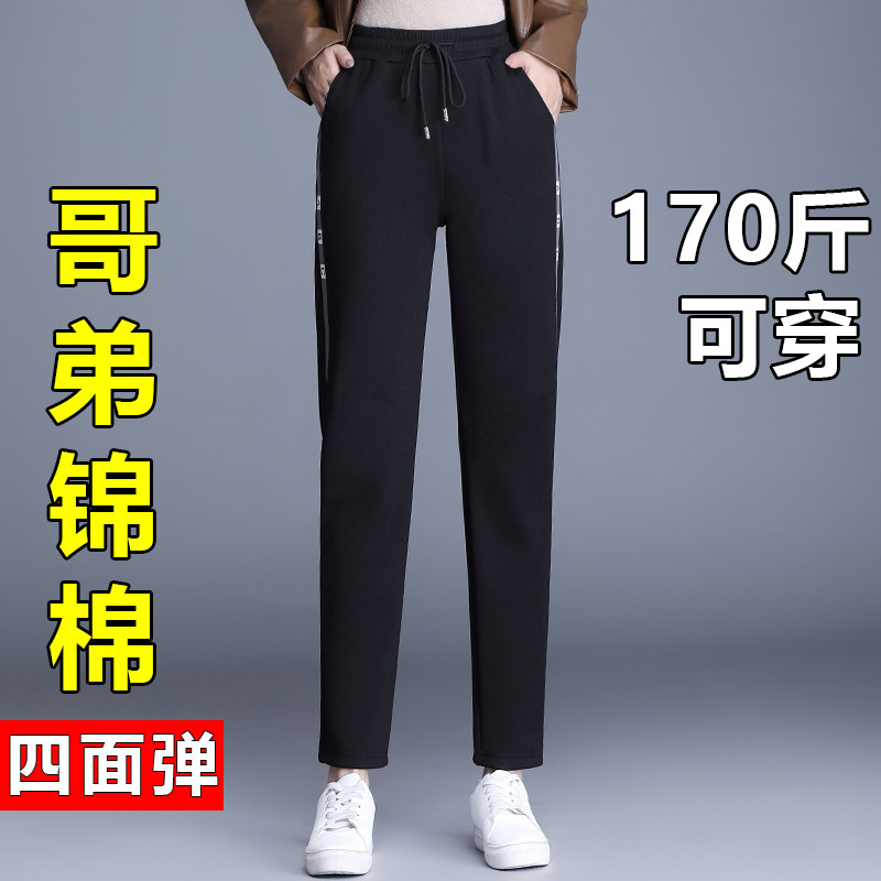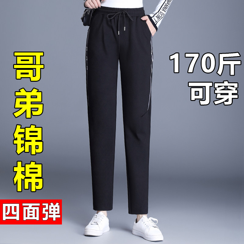 胖mm弹力松紧腰九分小脚萝卜裤 春秋哈伦裤 女裤 显瘦大码 女高腰修身