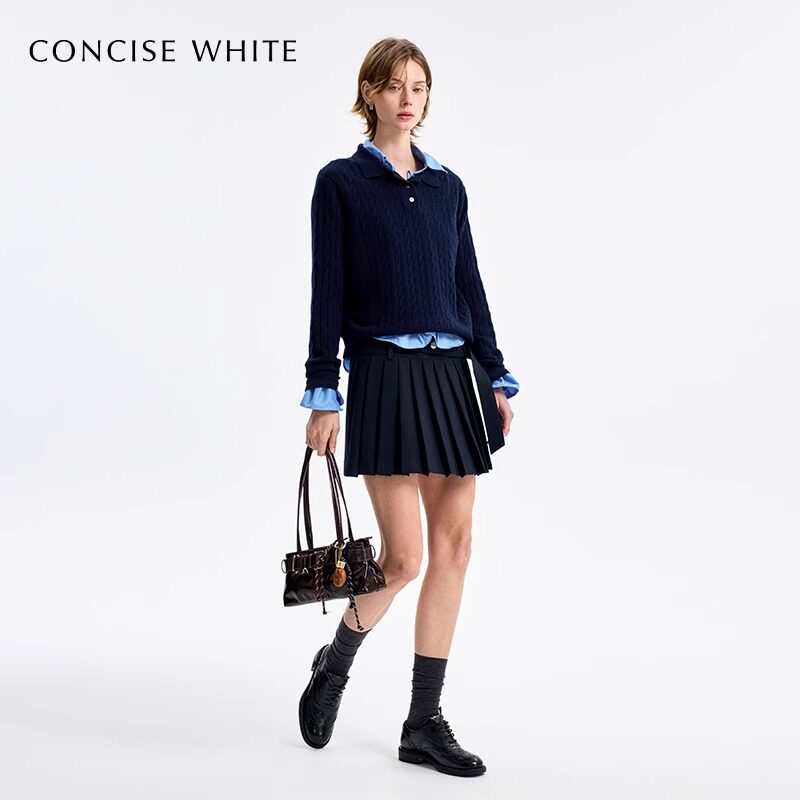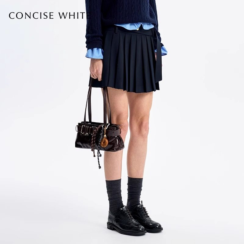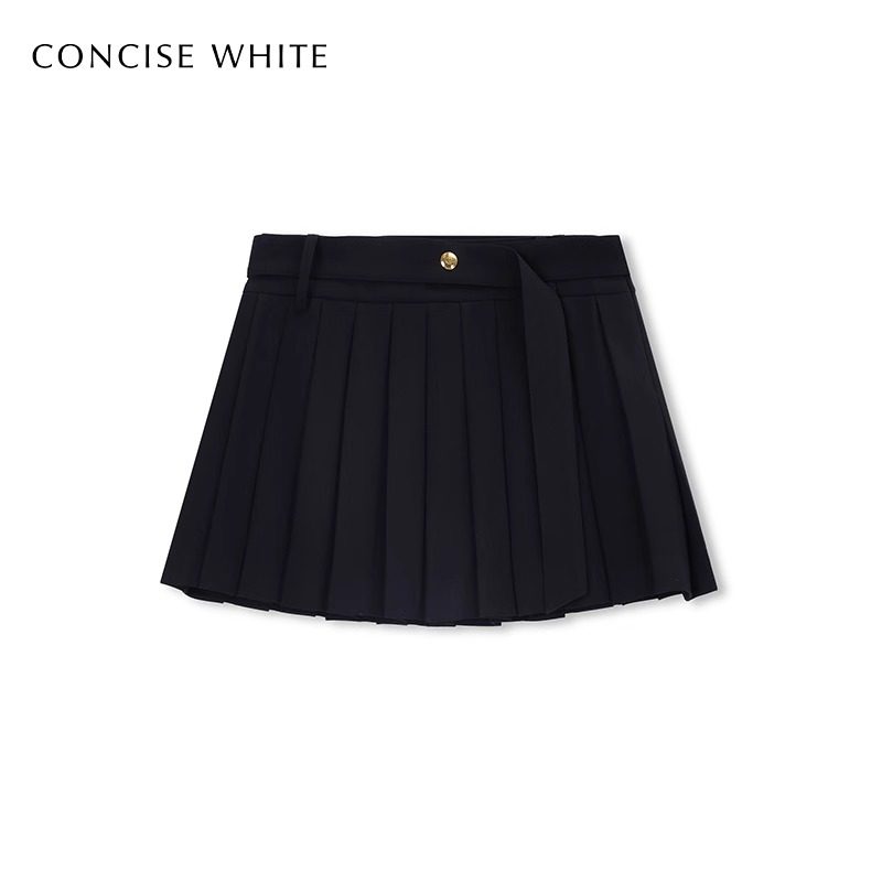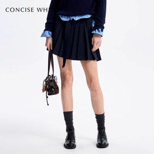 棕咖色加厚毛呢短裙女半身裙秋冬新款 灰黑百褶裙 配腰带小个子西装