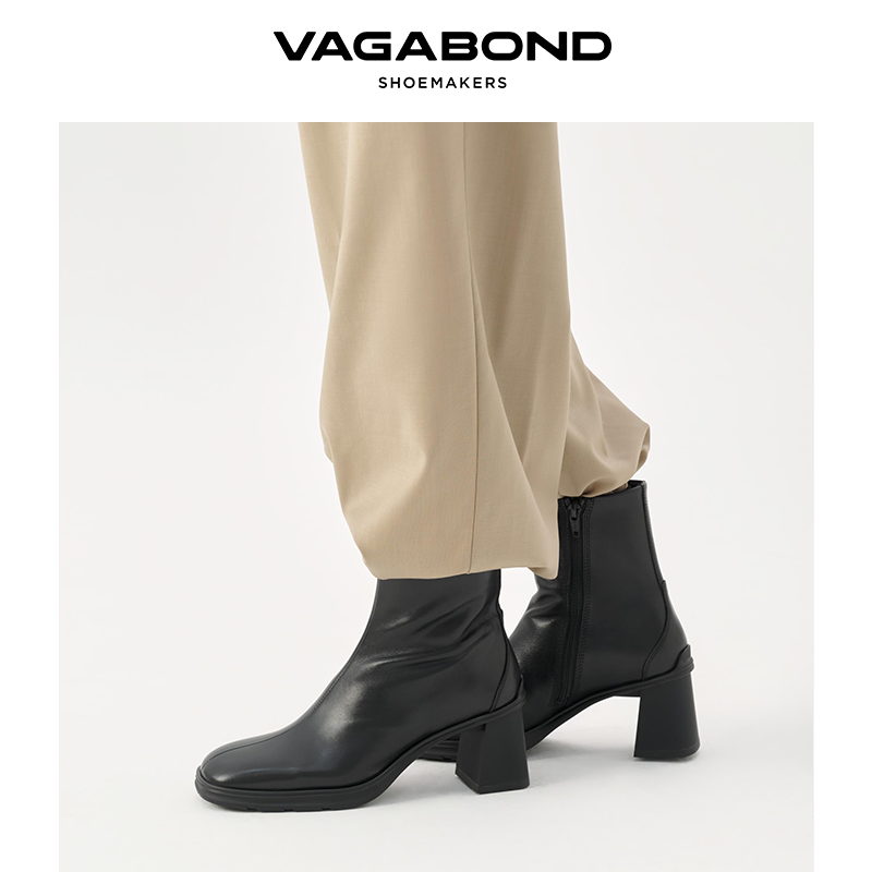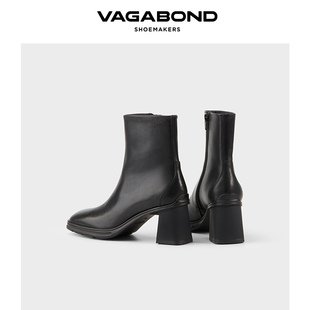 马丁靴 瘦瘦靴后拉链复古粗跟时装 法式 尖头高跟短靴女2025秋冬新款