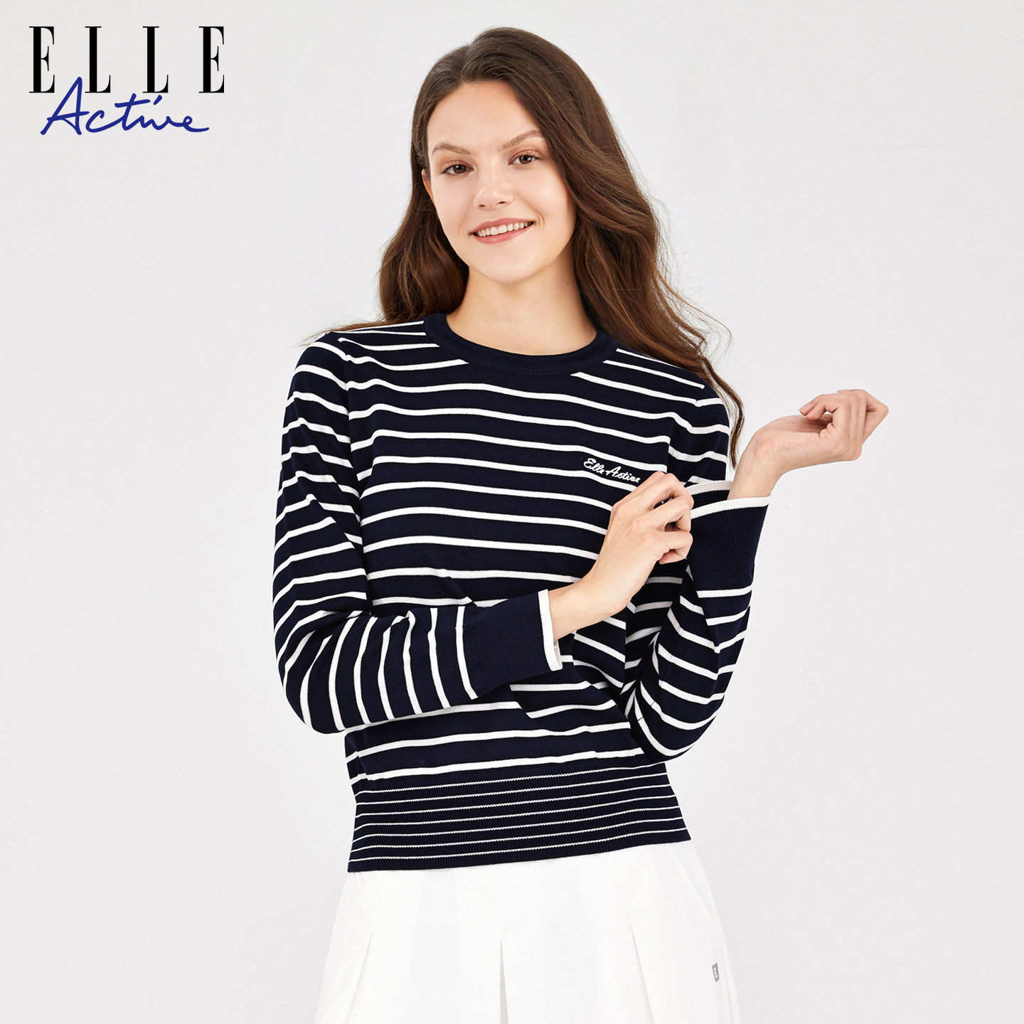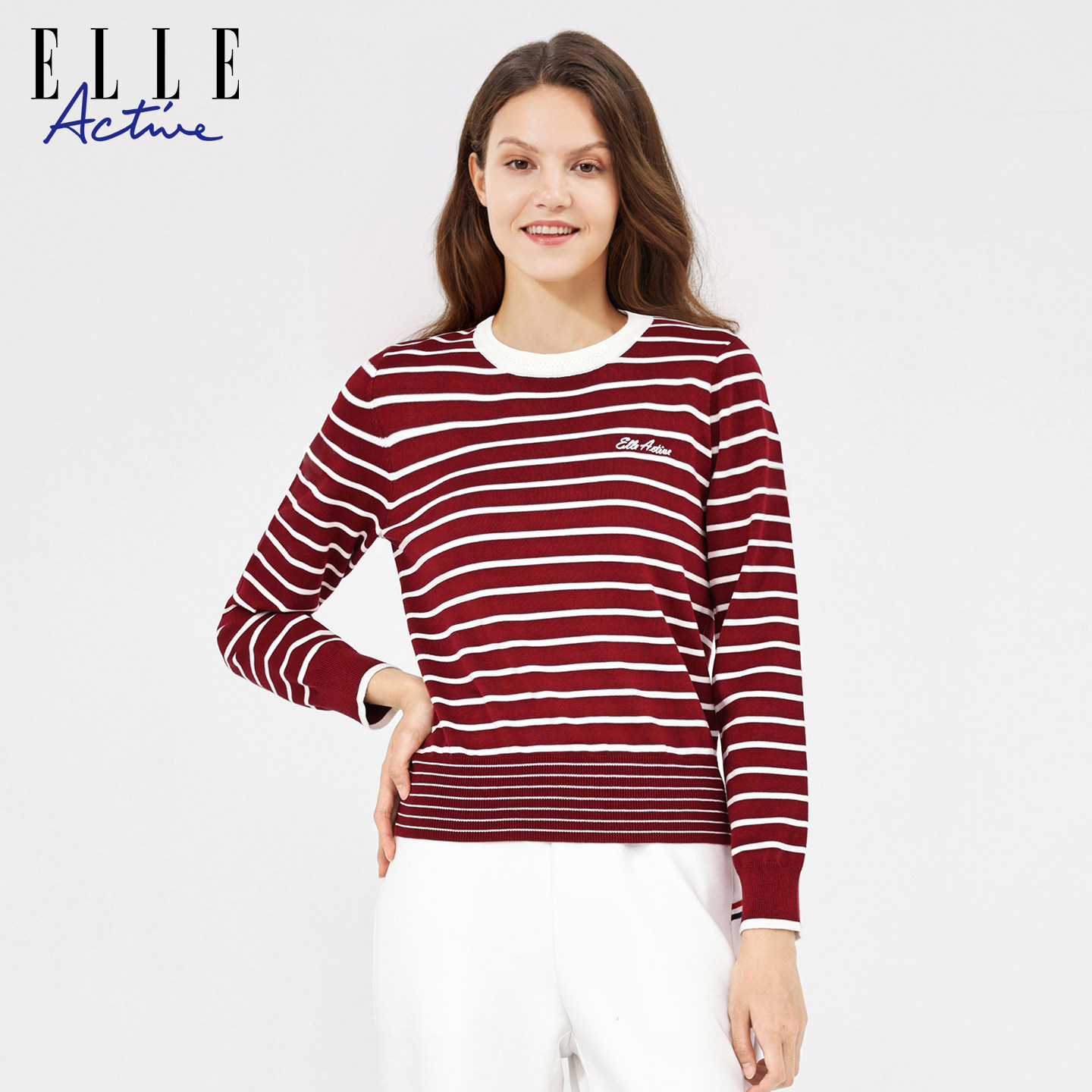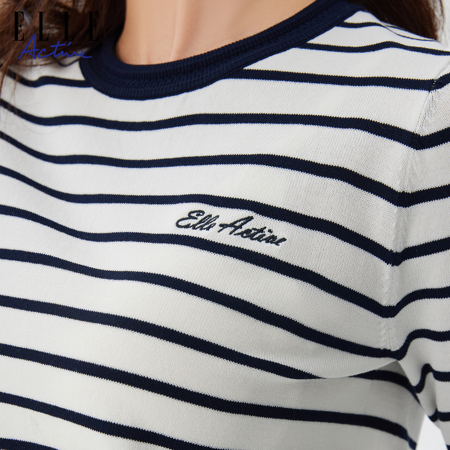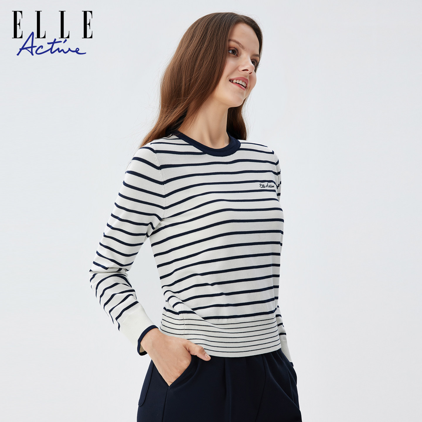 秋冬内搭气质显瘦圆领上衣 针织衫 ELLE Active航海系穿搭条纹长袖