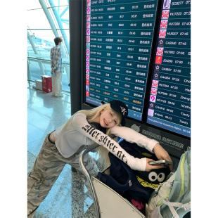百搭防晒罩衫 JMJ美式 修身 边哥特字母印花连帽T恤男女夏季 设计感袖