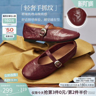 CX971CQ5 红色平底浅口女芭蕾单鞋 百思图春秋新款 超软羊皮玛丽珍鞋