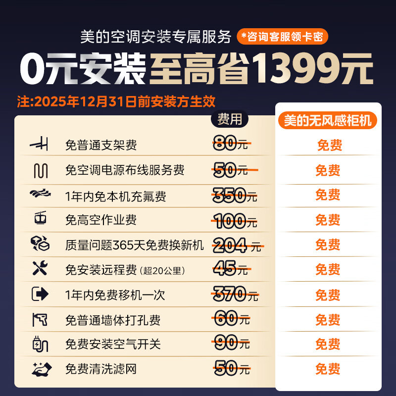 柜机客厅变频冷暖25年新品 美 空调酷省电Ultra新一级省电3匹立式