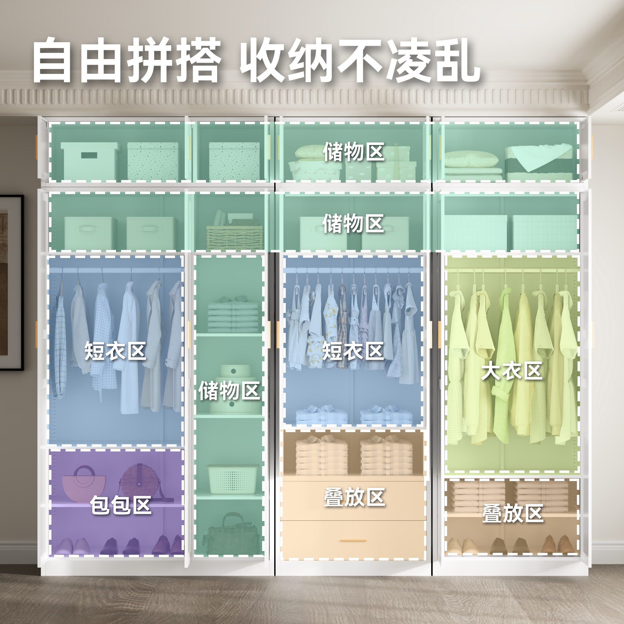 科飞亚钢制自由组合柜三门储物家用卧室欧式 铁皮衣柜 简约现代新款