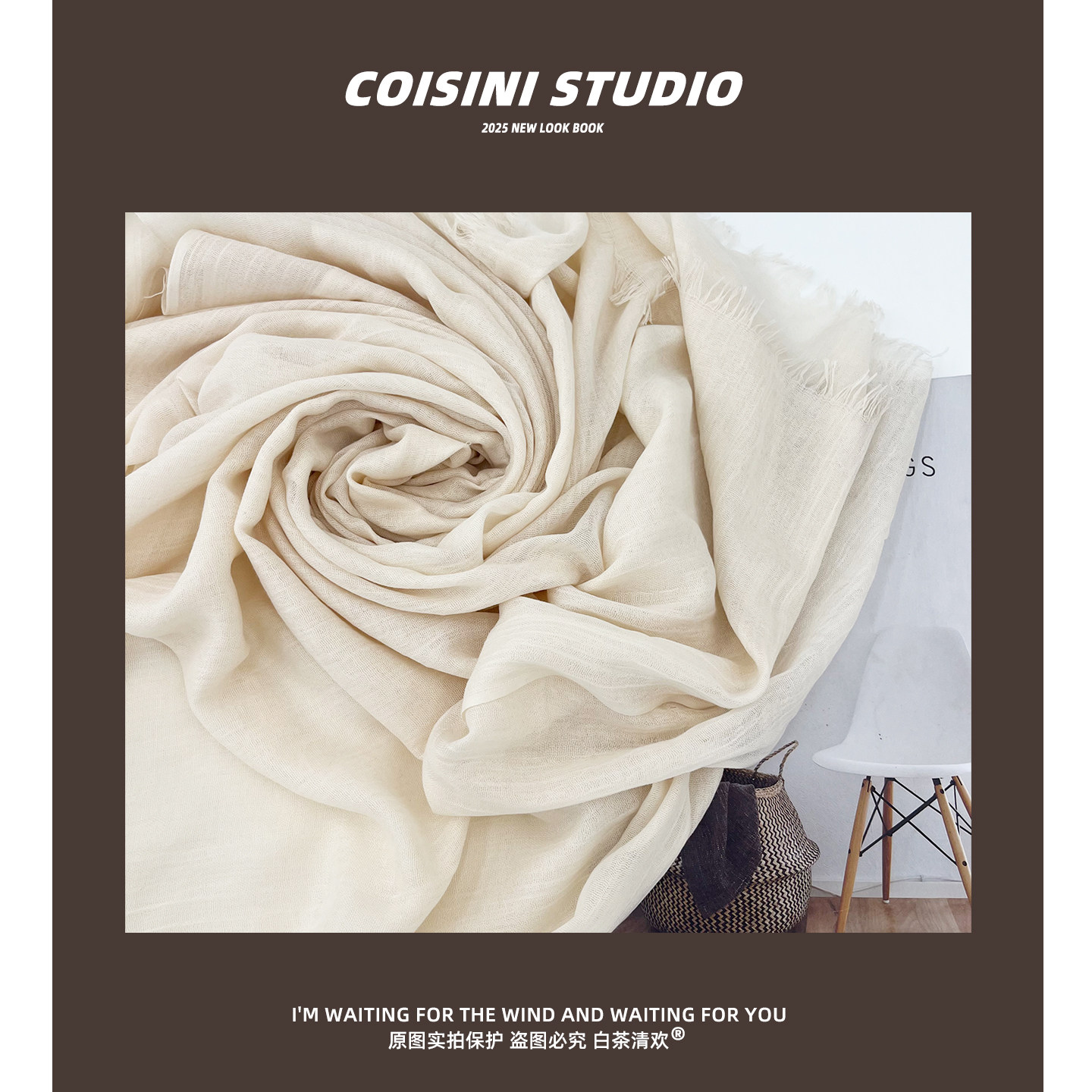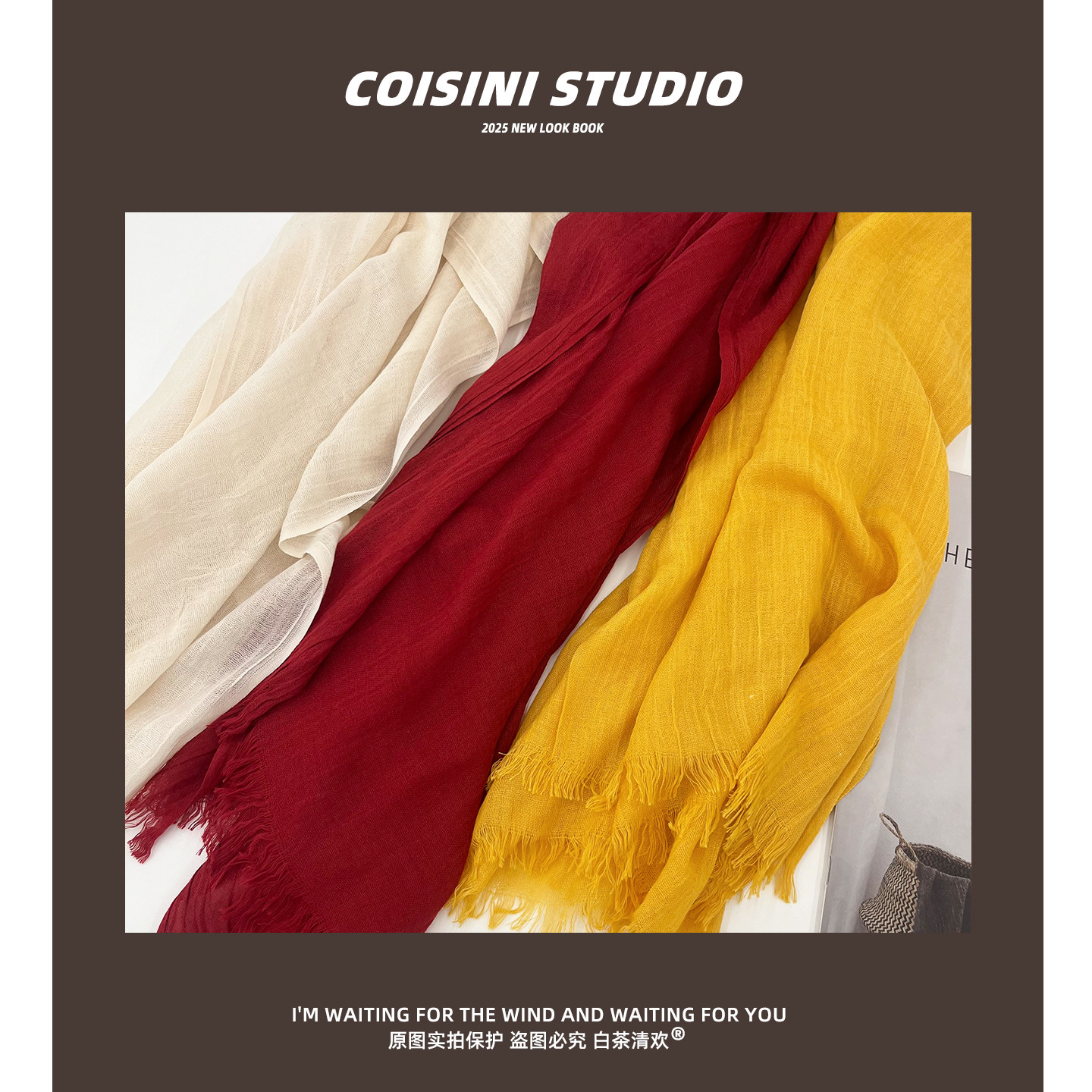 古力娜扎同款 头巾废土风纯色棉麻围巾女沙滩防晒披肩外搭围脖丝巾