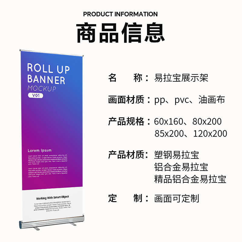 加强塑钢80x200易拉宝广告展会宣传展架可折叠60x160门型展架批发