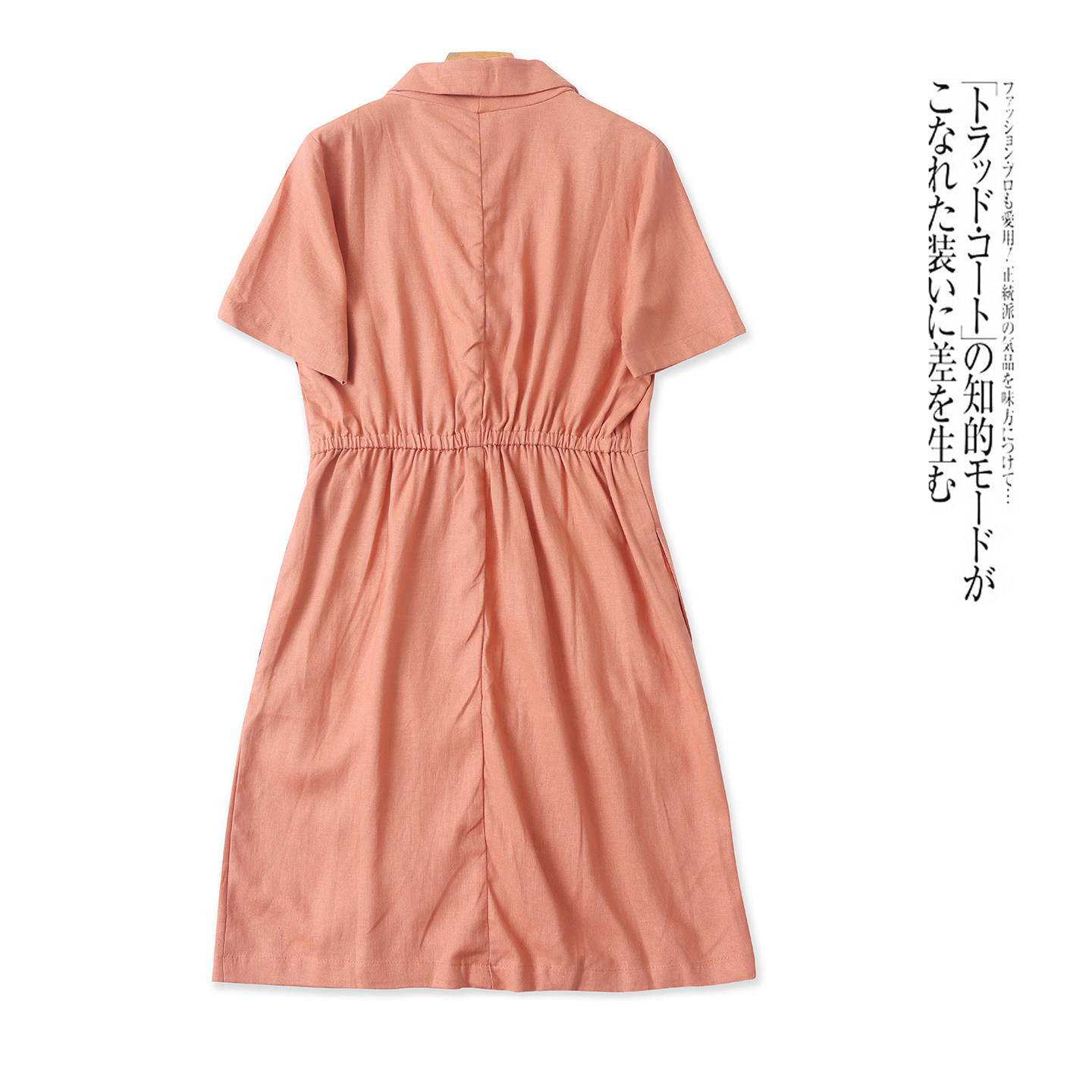 领单排扣短袖 亚麻衬衫 西装 夏新外贸女装 半松紧腰显瘦中裙31909 裙