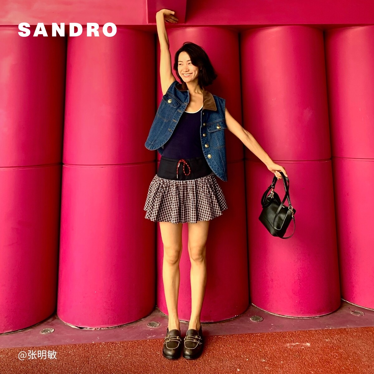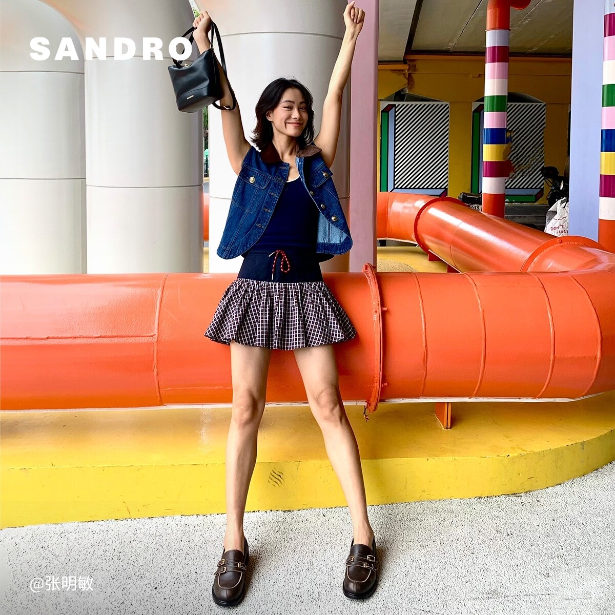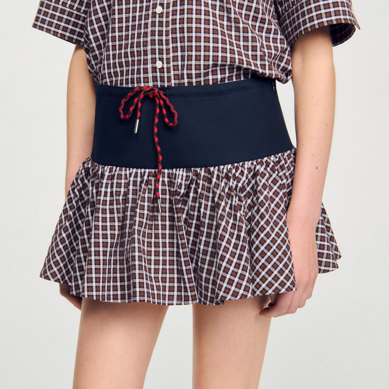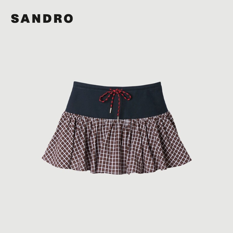 印花格纹高腰抽绳腰封蓬蓬裙裤 法式 末7折SANDRO2025秋冬女装 季