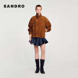 都市游牧巴恩风大翻领廓形皮衣 法式 季 末7折SANDRO2025秋冬女装