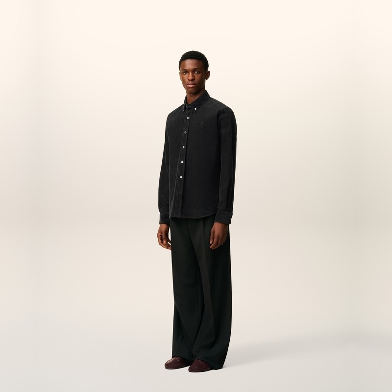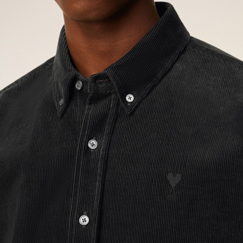 Ami Paris 男士 爱心棉质长袖 末甄选 黑色ADC灯芯绒衬衫 上衣 季