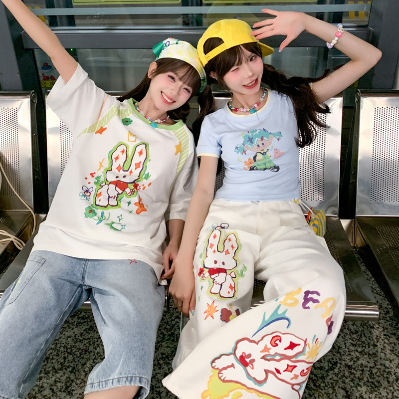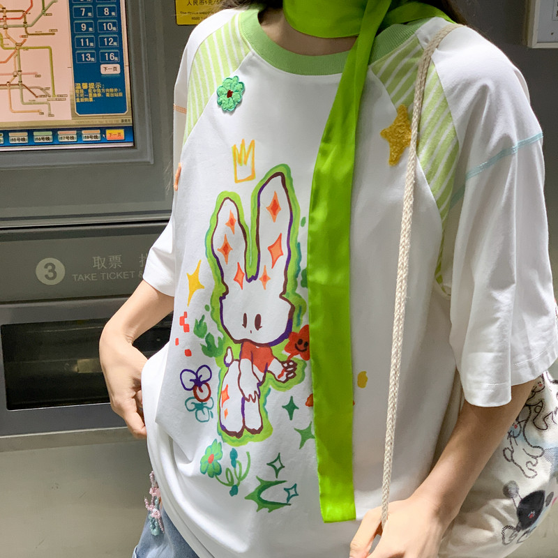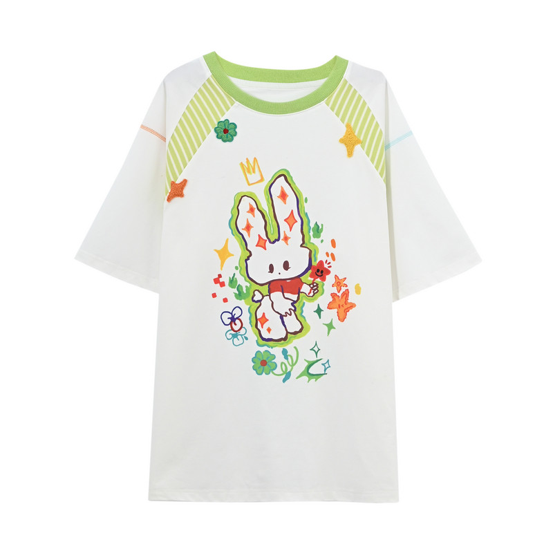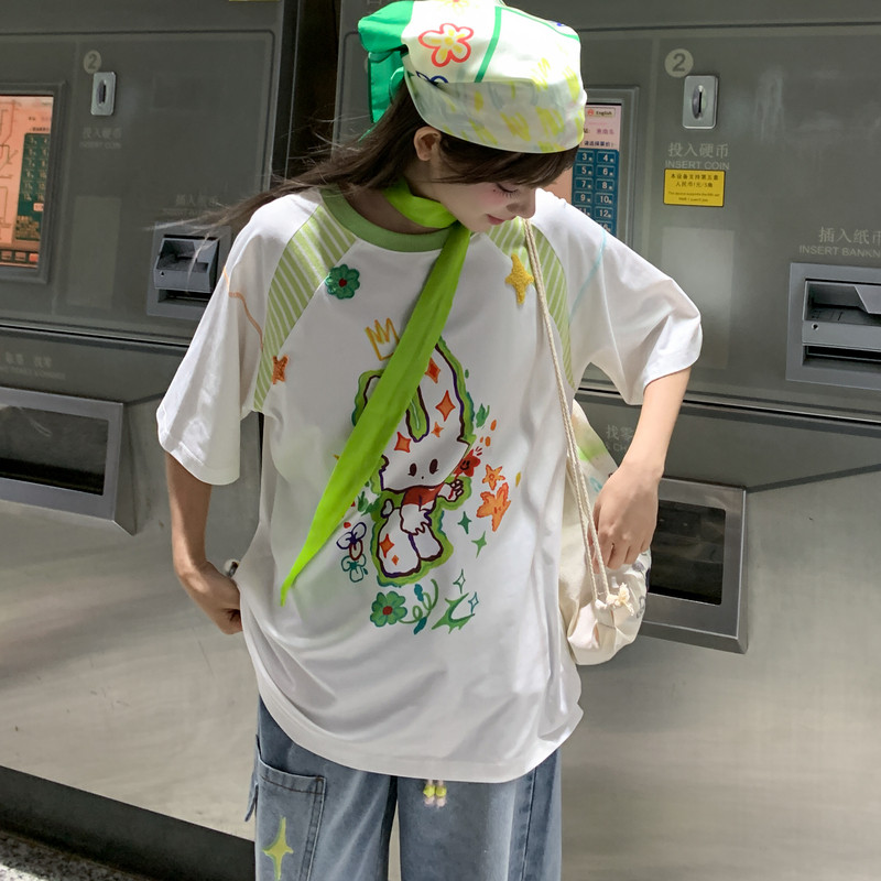 森女部落甜美兔子印花T恤女短袖 夏宽松显瘦百搭凉感上衣 2025新款