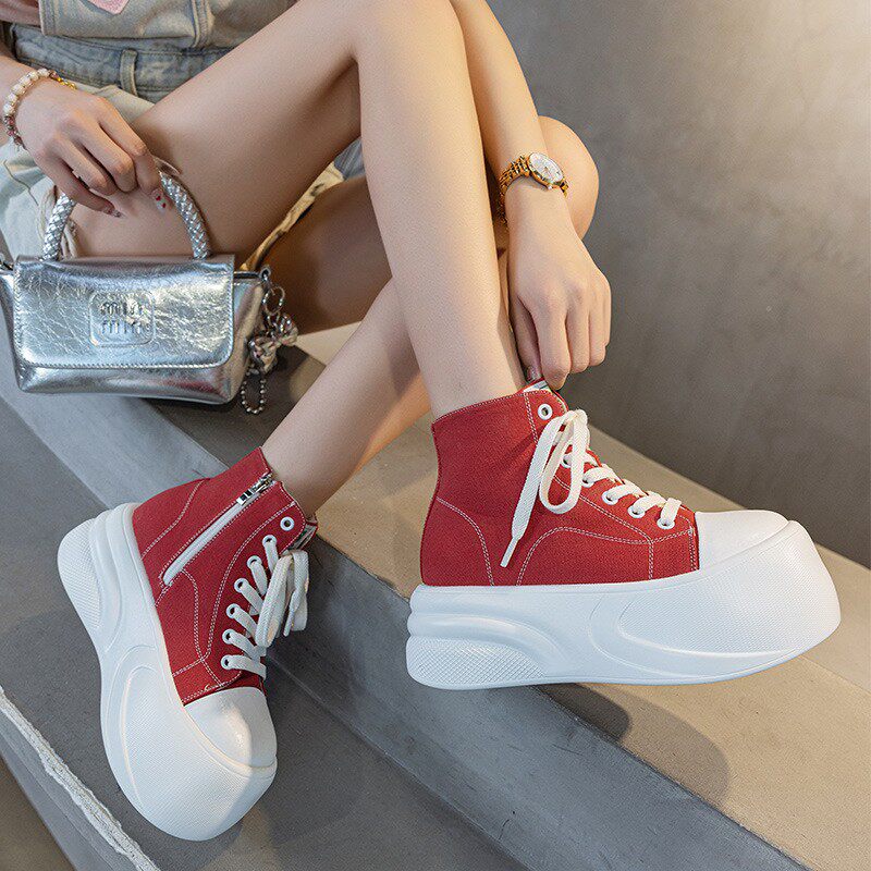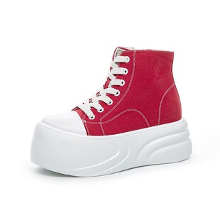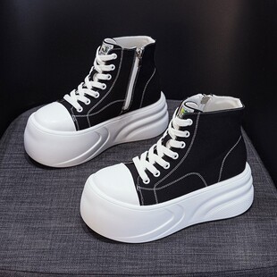 内增高7CM帆布鞋 显瘦丑萌圆头鞋 女夏厚底高帮鞋 休闲单鞋 时尚 韩版