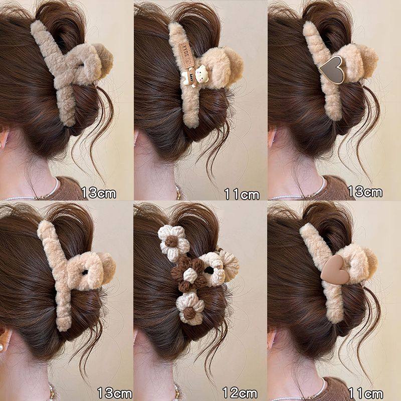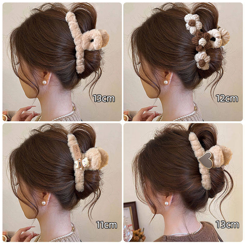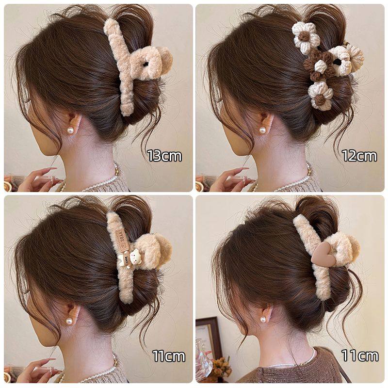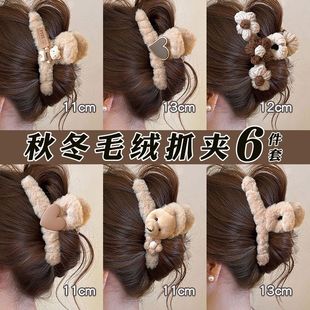 毛绒布丁熊抓夹女秋冬大号一字鸭嘴夹头饰侧边刘海发夹前额碎发卡