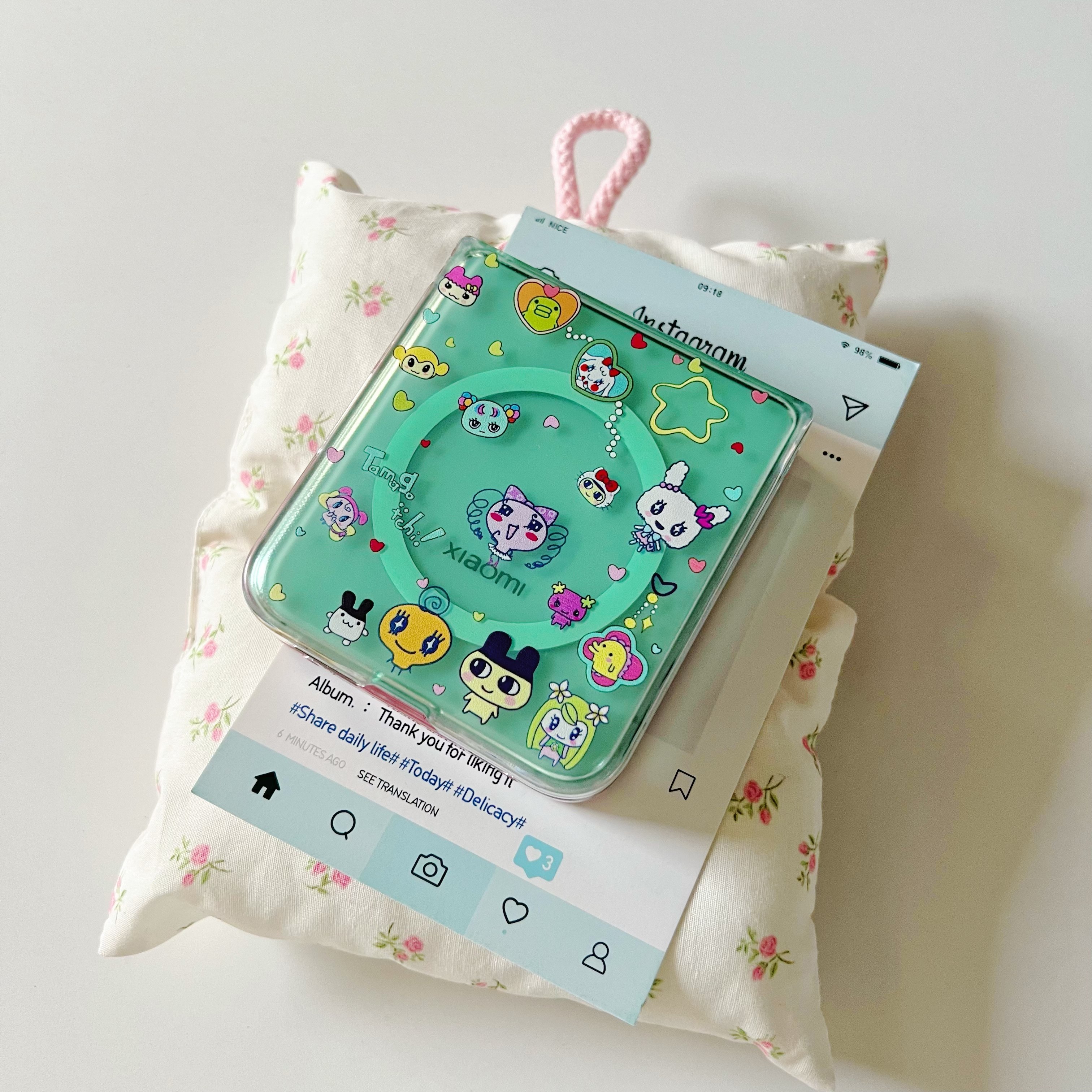 可爱撞色拓麻歌子适用于小米mixflip2手机壳适用于三星zflip7 6硬壳适用于华为pocket2折叠保护套