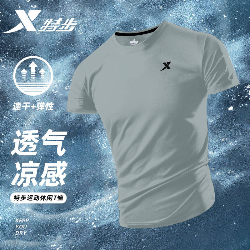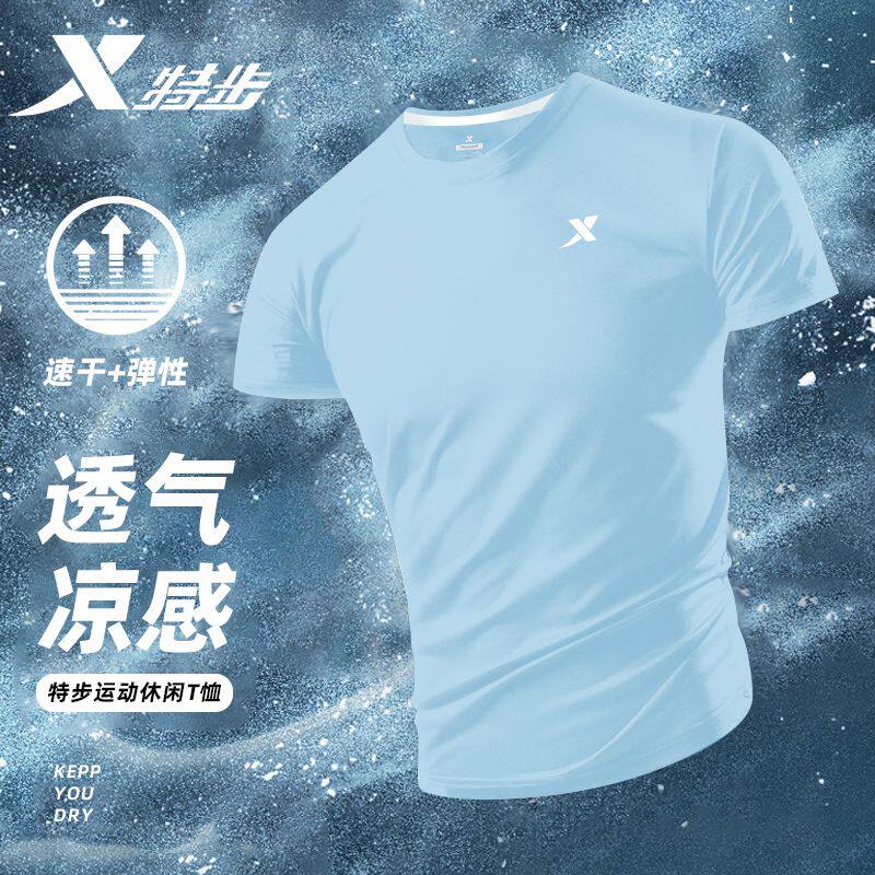 运动服男士 特步冰丝短袖 新款 2026夏季 跑步健身体考速干衣 t恤男款