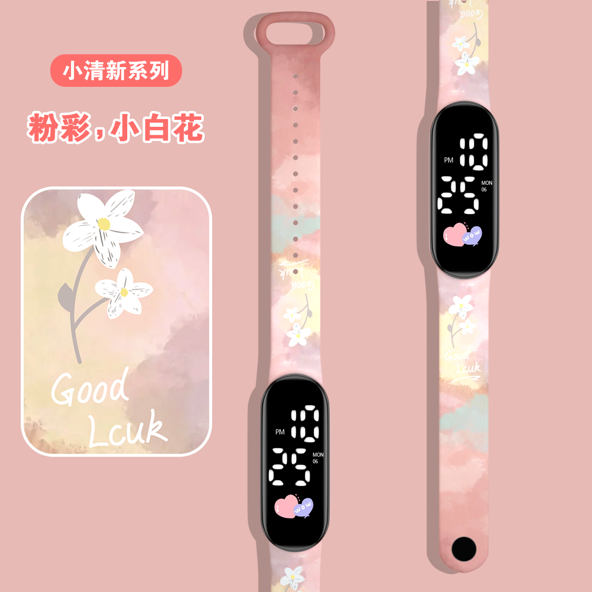 小清新爱心学生手表简约轻奢初高中生时尚 潮流防水运动电子手环表