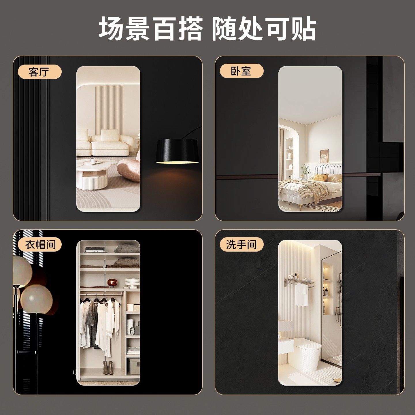 软镜子贴墙自粘全身穿衣镜家用高清墙面粘贴亚克力镜面贴纸试衣镜