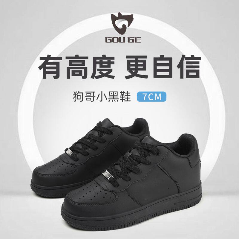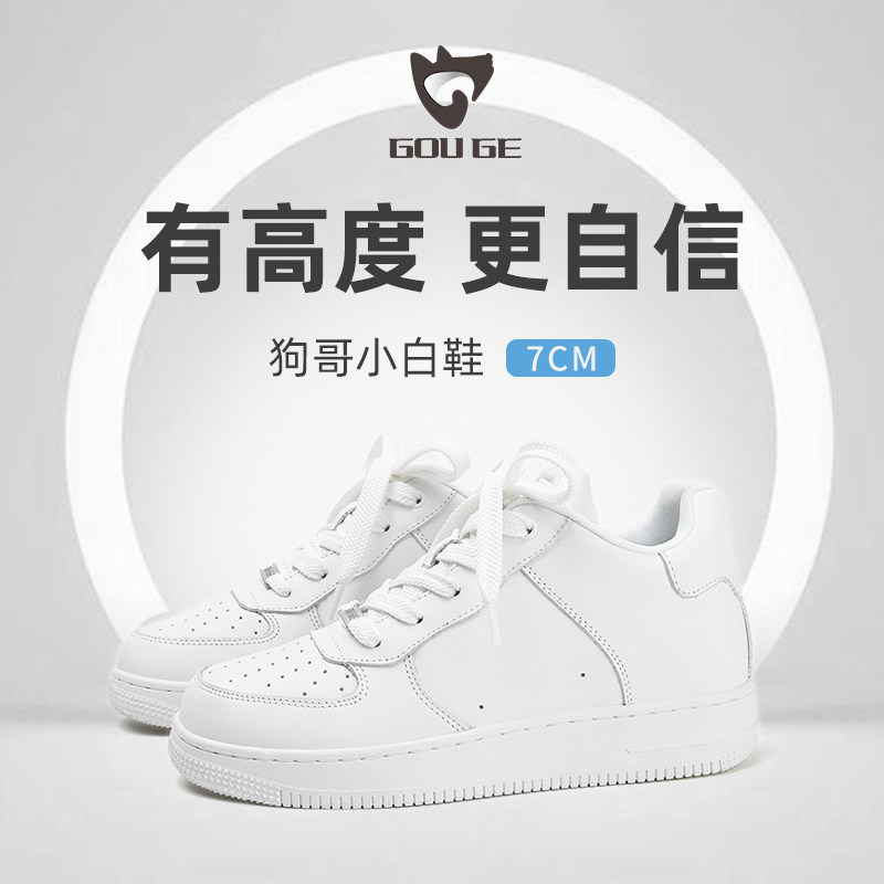 百搭内增高厚底板鞋 狗哥7CM增高小白鞋 超纤皮小个子男2025女新款