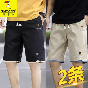 外穿速干休闲裤 冰丝短裤 宽松大码 男士 子 啄木鸟夏季 运动五分裤 新款