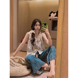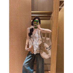 无袖 复古波西米亚短款 上衣 吊带背心女夏宽松外搭时尚 镂空针织罩衫