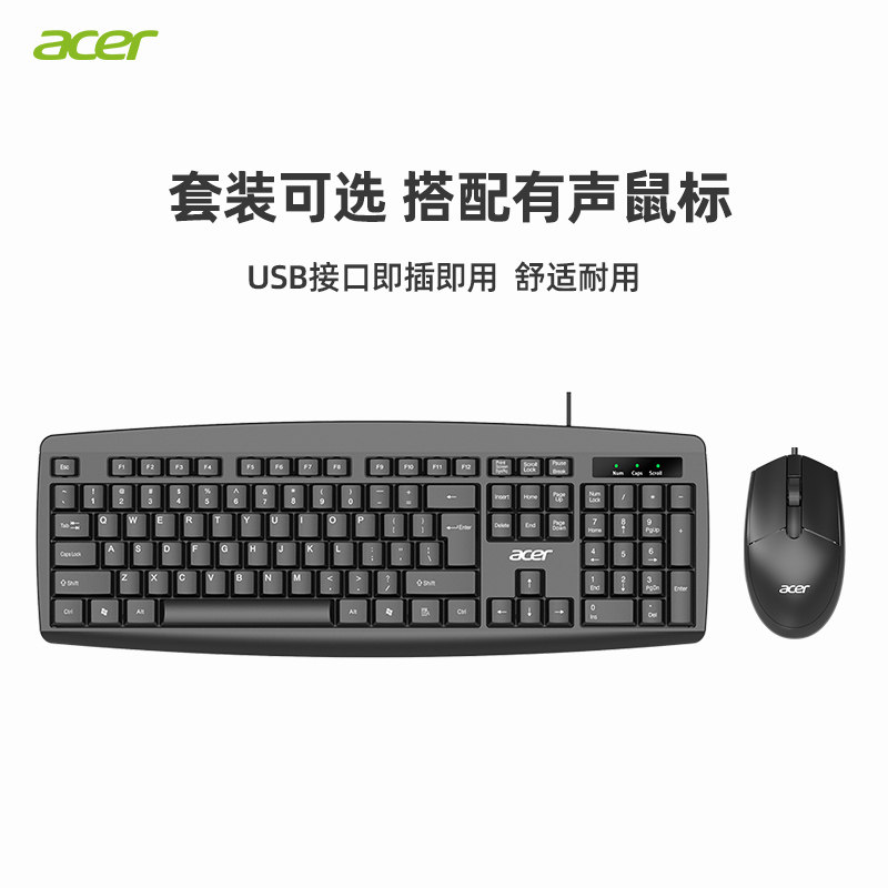 机笔记本电脑办公专用usb无线键鼠 台式 宏碁 acer有线键盘鼠标套装