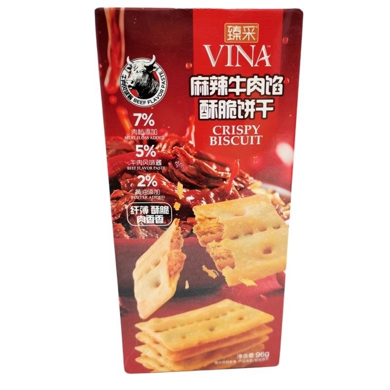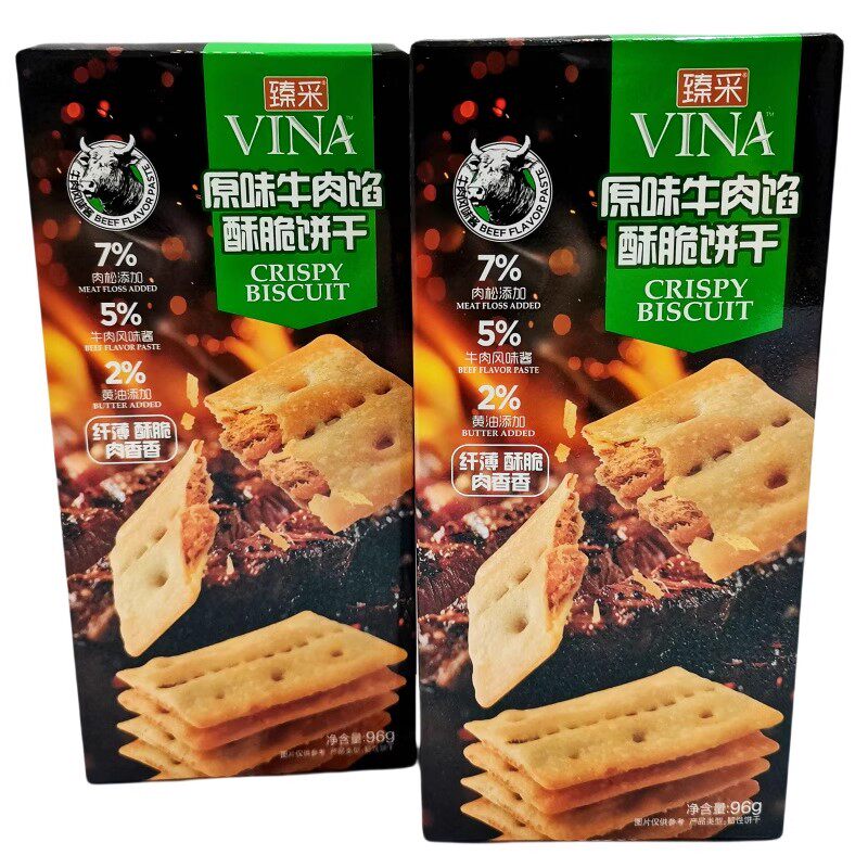 臻采牛肉馅酥脆饼干96g 黄油肉松夹心薄脆麻辣味休闲小零食下午茶