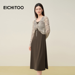 背心长裙 气质罩衫 爱居兔度假风两件式 收腰连衣裙女春秋新款