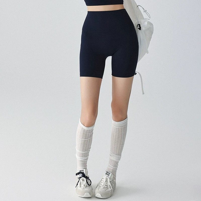 速干瑜伽四分裤 夏季 越野女高腰跑步健身裤 薄款 裸感运动短裤