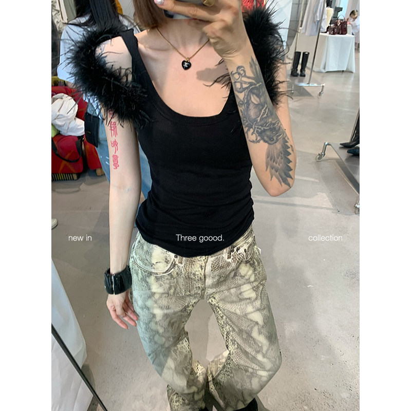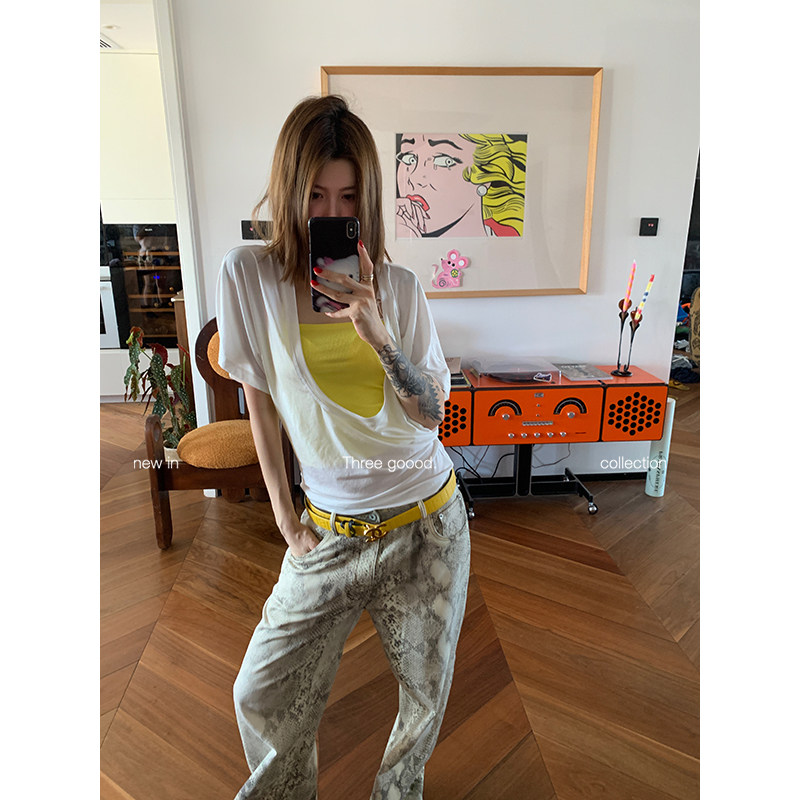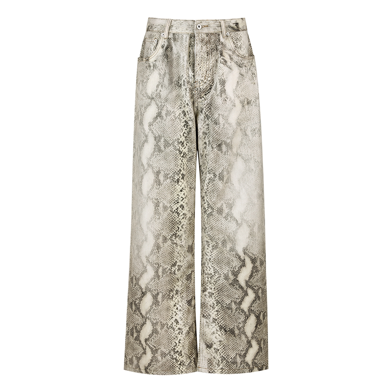 复古蛇纹印花水洗牛仔长裤 时髦腔调 GOOOD殷三吉 THREE