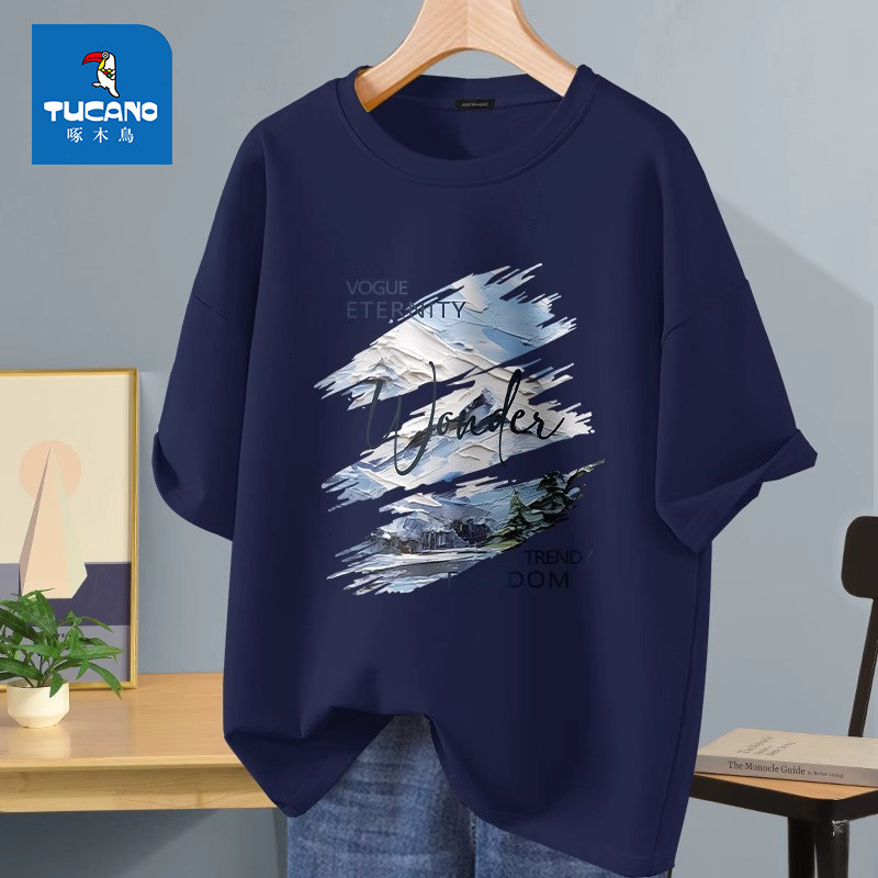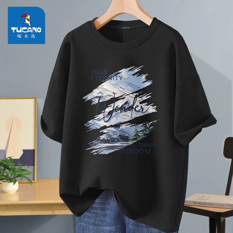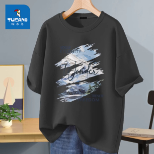 重磅短袖 宽松潮流百搭衣服纯棉半袖 t恤男士 夏季 女 新款 啄木鸟美式