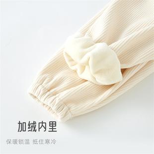 浅色糯米休闲裤 子 女秋冬加绒胖妹妹mm高腰宽松显瘦梨型身材阔腿裤
