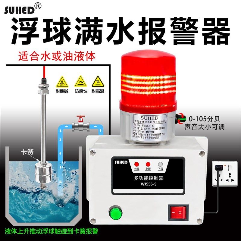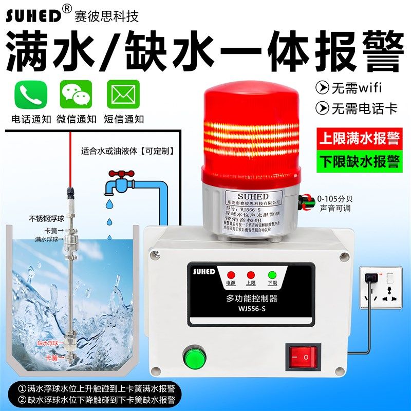 智能感应水位报警器浮球开关箱水缺油液位高低满水池无线远程装 置