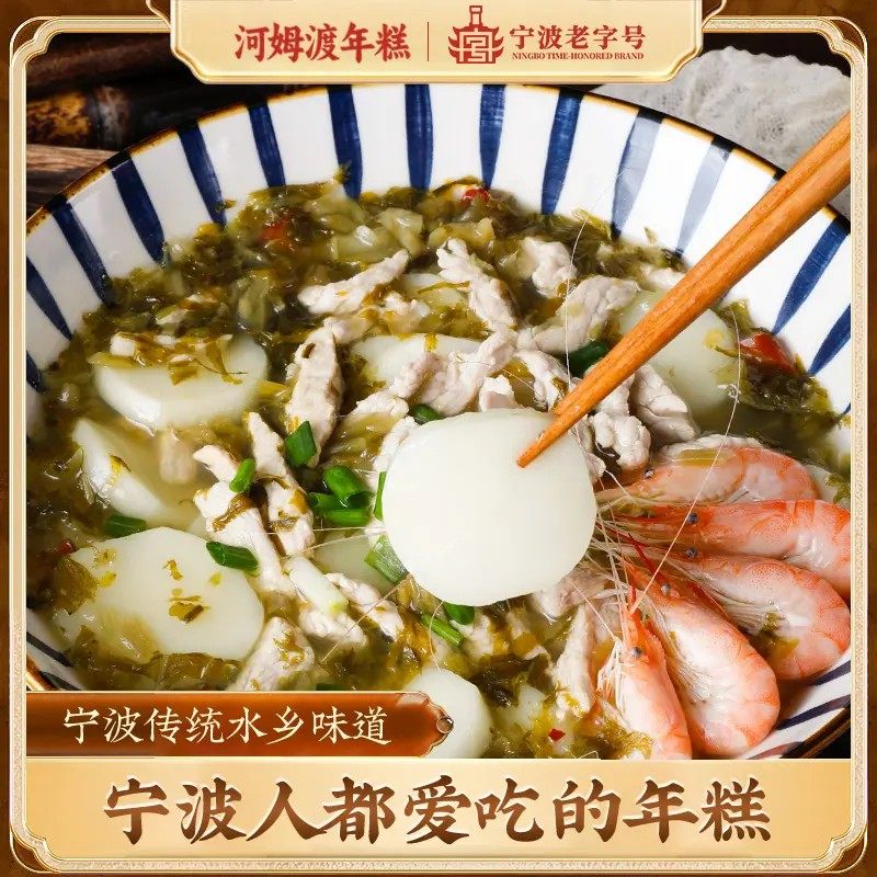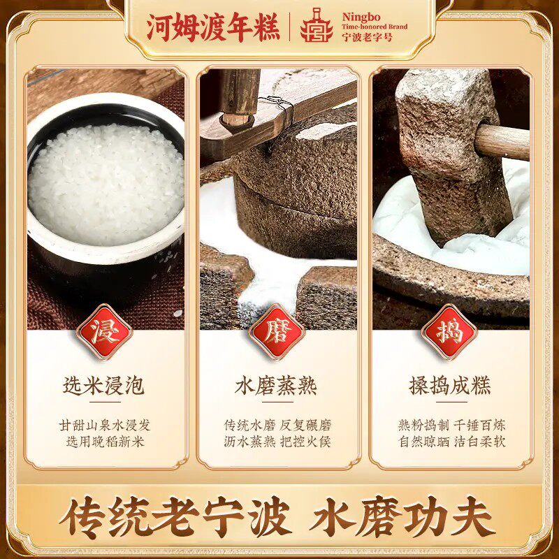 宁波老字号 炒年糕508g 河姆渡宁波特产水磨年糕软糯Q弹真空包装