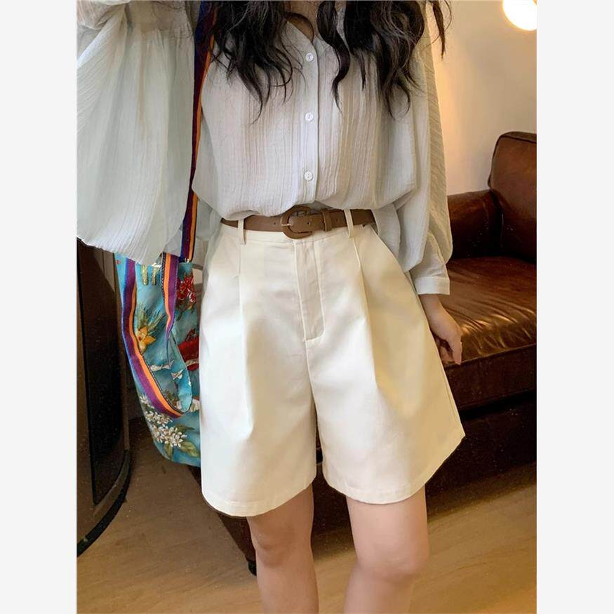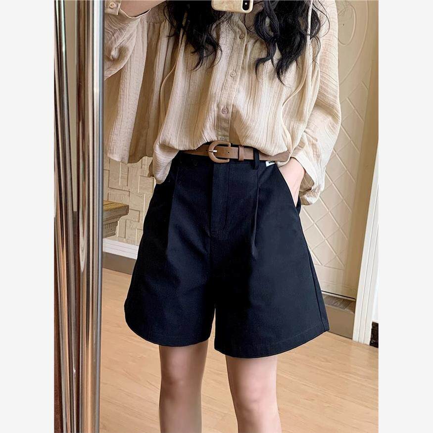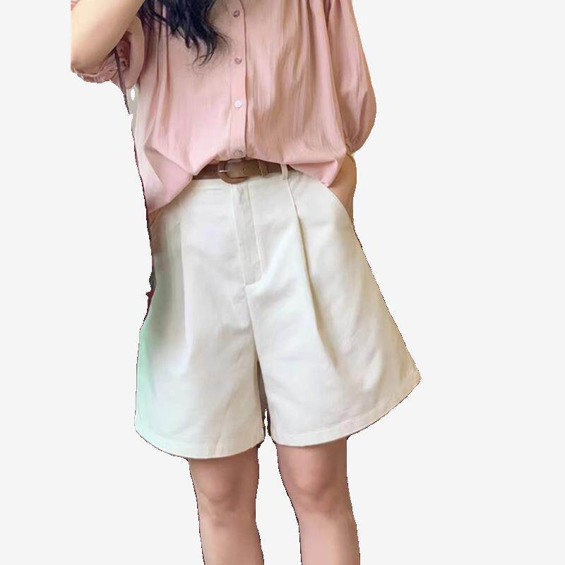 胖mm百搭显瘦直筒a字五分阔腿中裤 大码 女夏季 卡其色高腰休闲短裤