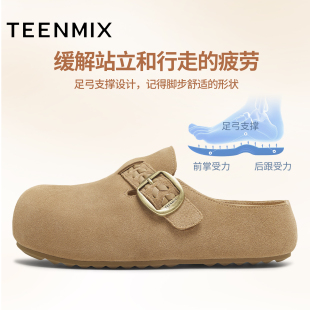 BL561CH5 新款 天美意厚底增高勃肯包头半拖鞋 女外穿休闲凉拖秋季