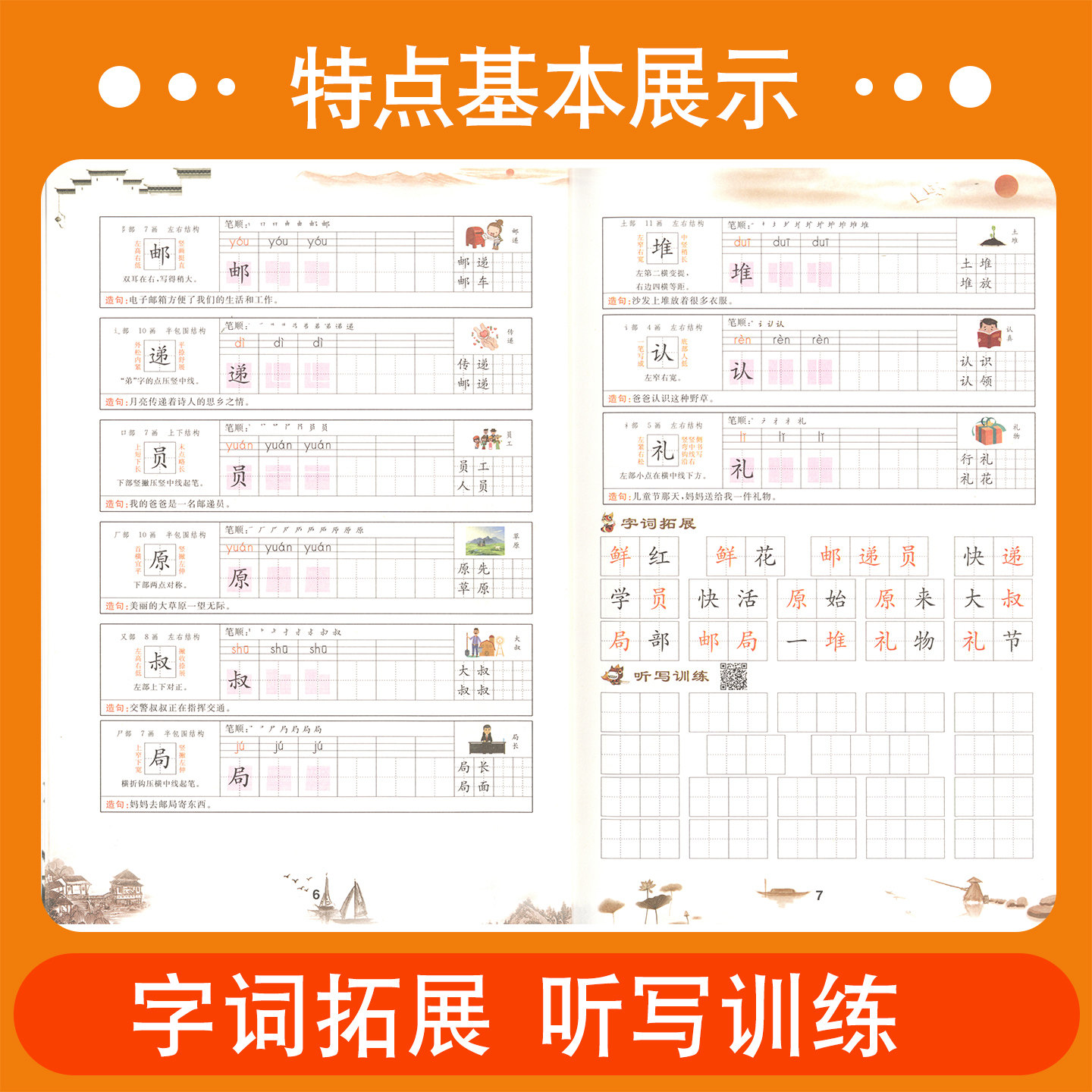 社预习临摹1 乐学熊同步练字帖小学生一二三四五六年级123456年级下册人教版 开明出版 人教版 6年级听写认读拓展书写 钢笔描红部编版
