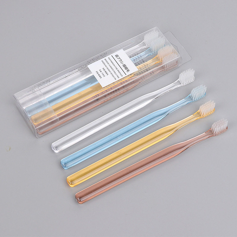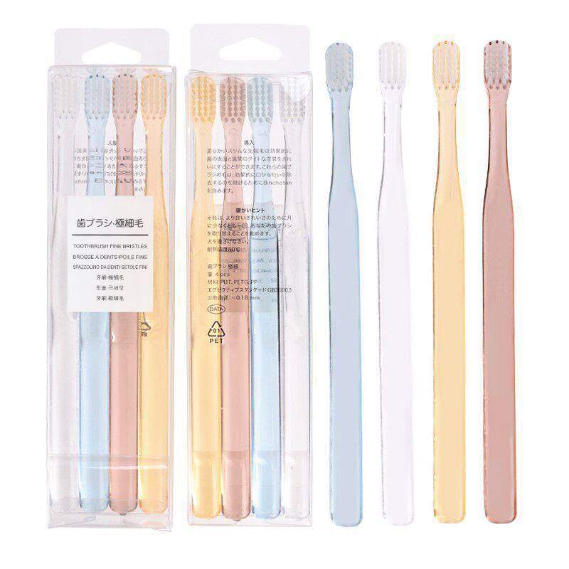 高颜值女士专用 水晶牙刷日本小头软毛牙刷4支装 无印同款 透明日式