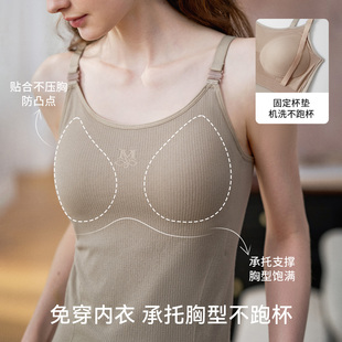 婧麒哺乳背心孕妇保暖吊带产后内搭喂奶免穿带胸垫内衣加绒秋冬款