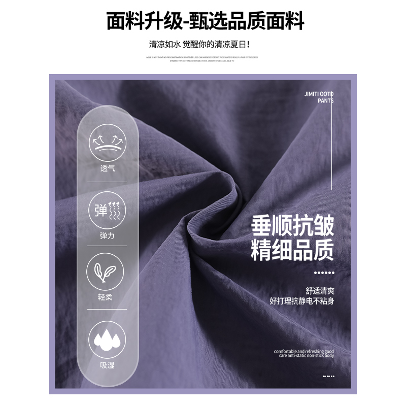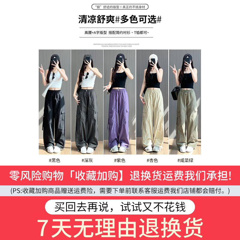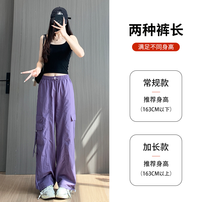 高腰宽松休闲直筒冰丝速干运动裤 紫色降落伞工装 2025新款 女夏季 裤