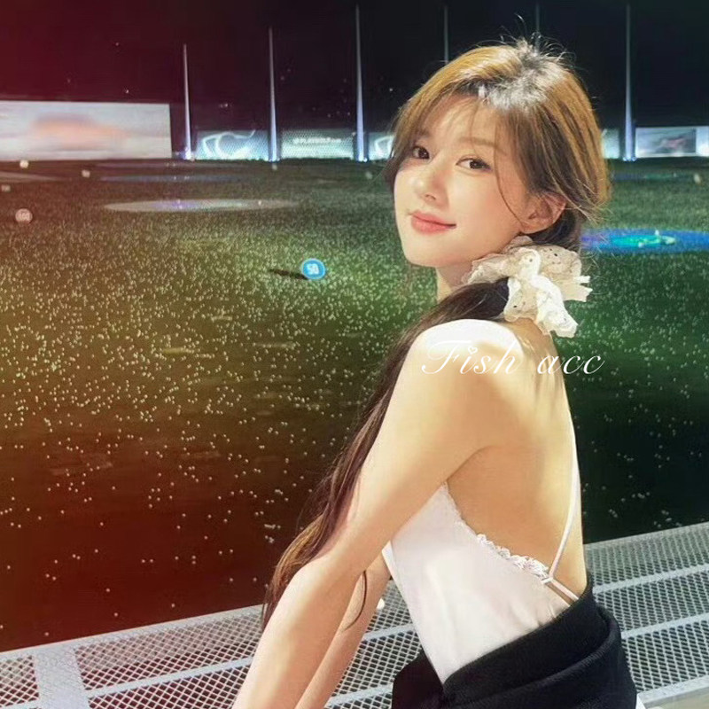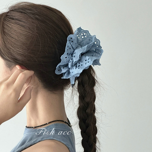 韩系花边褶皱大肠发圈女2025新款 高级感扎头发绳超大头花头绳发饰