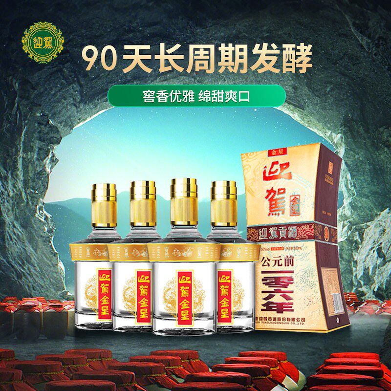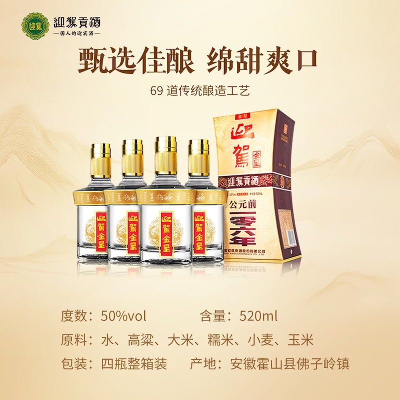 整箱装 4瓶 自饮自酌聚会宴请 金星浓香型白酒50度520ml 迎驾贡酒