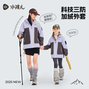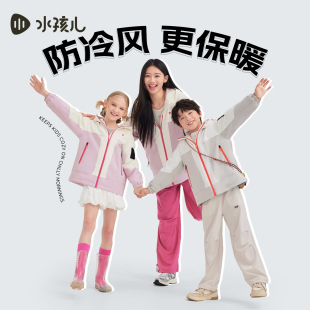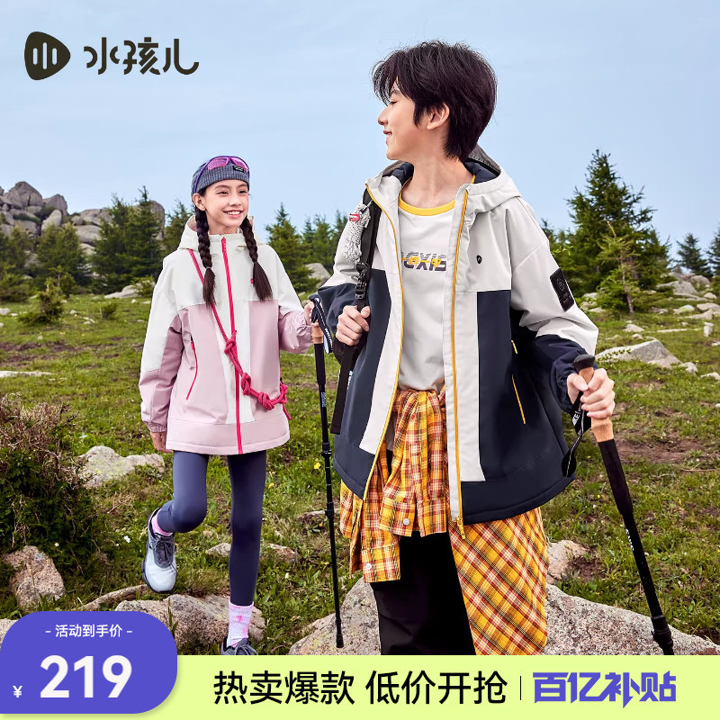 水孩儿童装 春秋男童户外拼色厚风衣冲锋上衣 三防外套女童2026新款