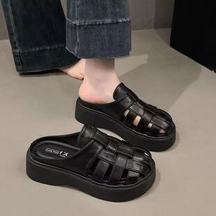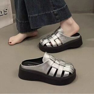 外穿松糕底增高凉拖时尚 新款 高级感 女2025夏季 厚底包头半拖鞋
