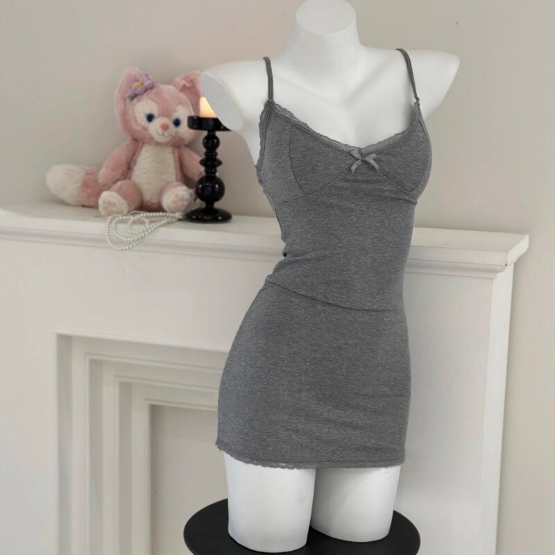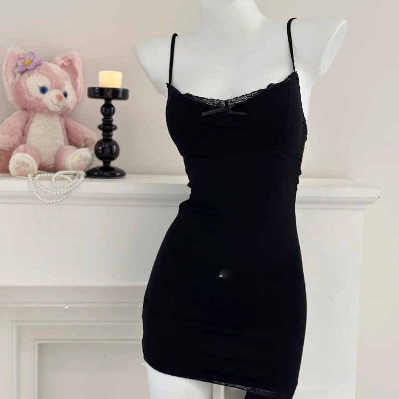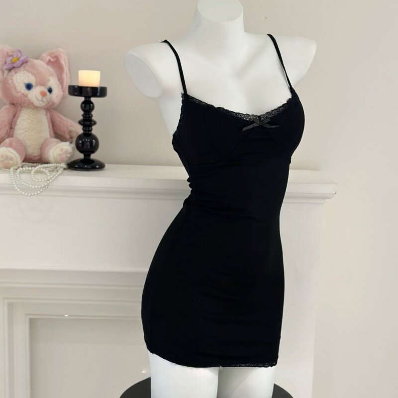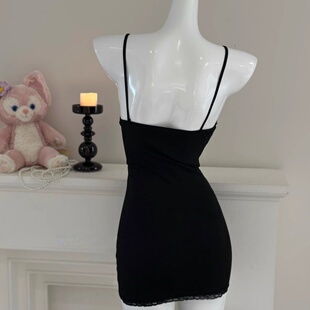 莫代尔性感女睡衣带胸垫纯欲风蕾丝包臀裙吊带睡裙显身材修身 辣妹
