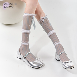 purpleguys花边蕾丝小腿袜子女夏薄款 蝴蝶结绑带jk芭蕾风搭玛丽珍