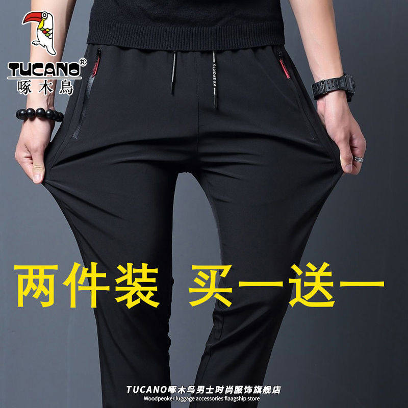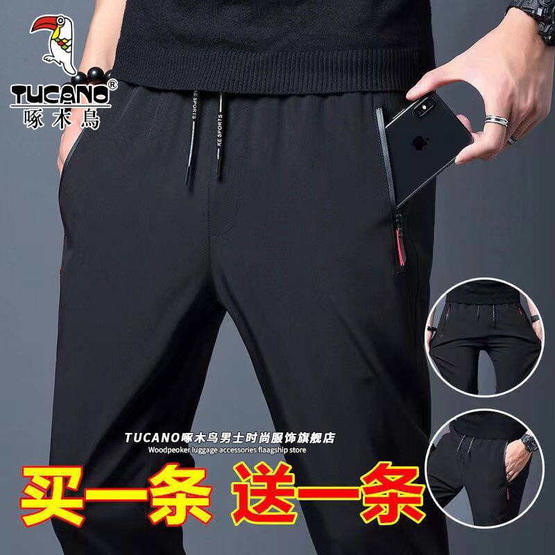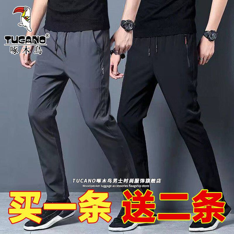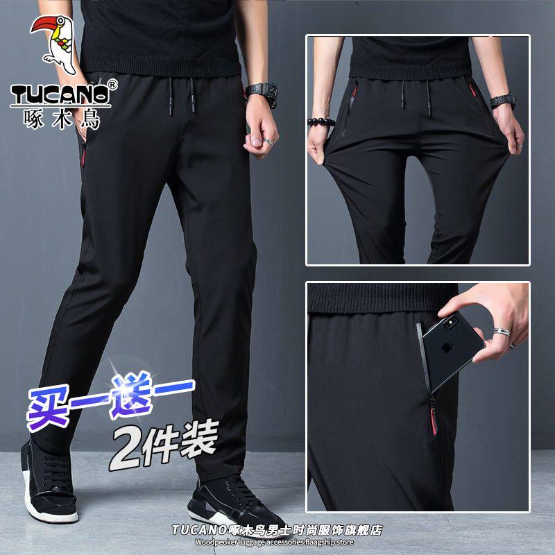 休闲裤 薄款 纯色运动裤 直筒男士 子 啄木鸟冰丝裤 弹力长裤 子男夏季
