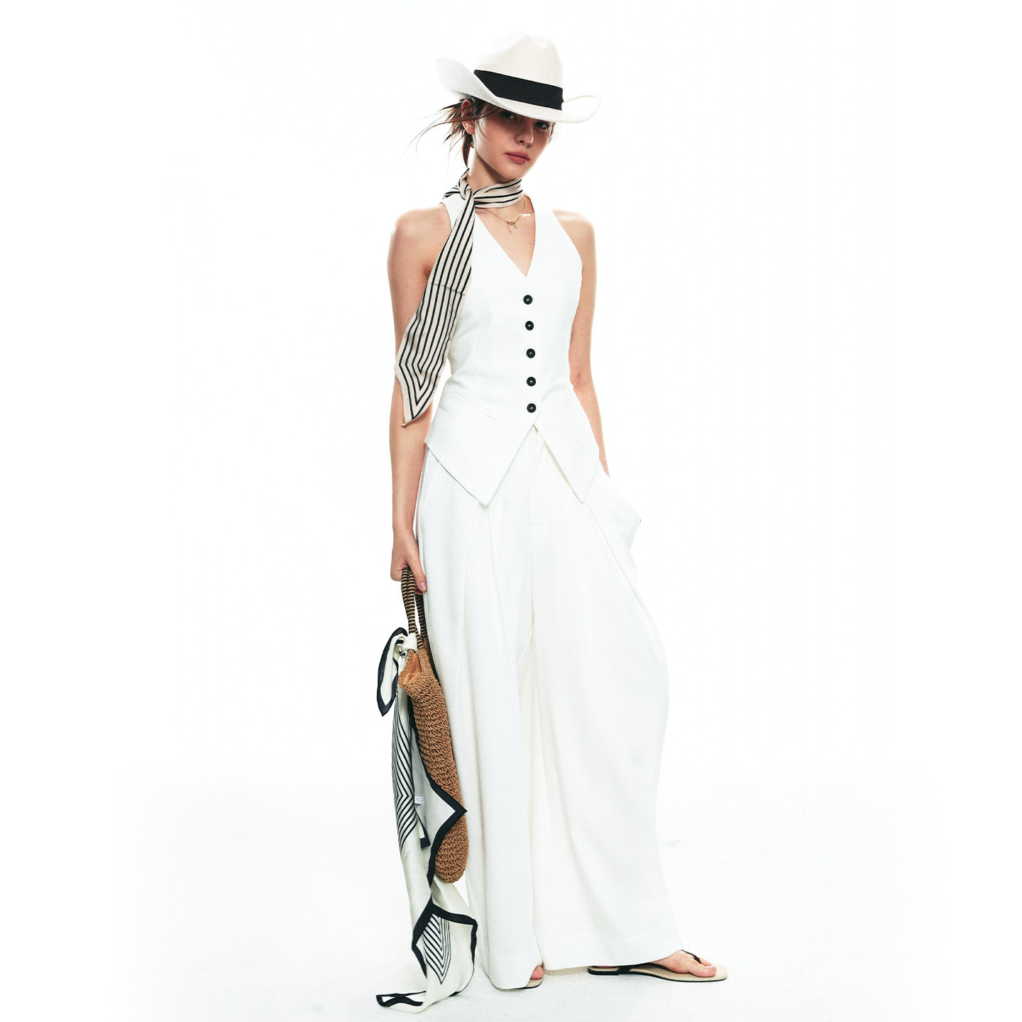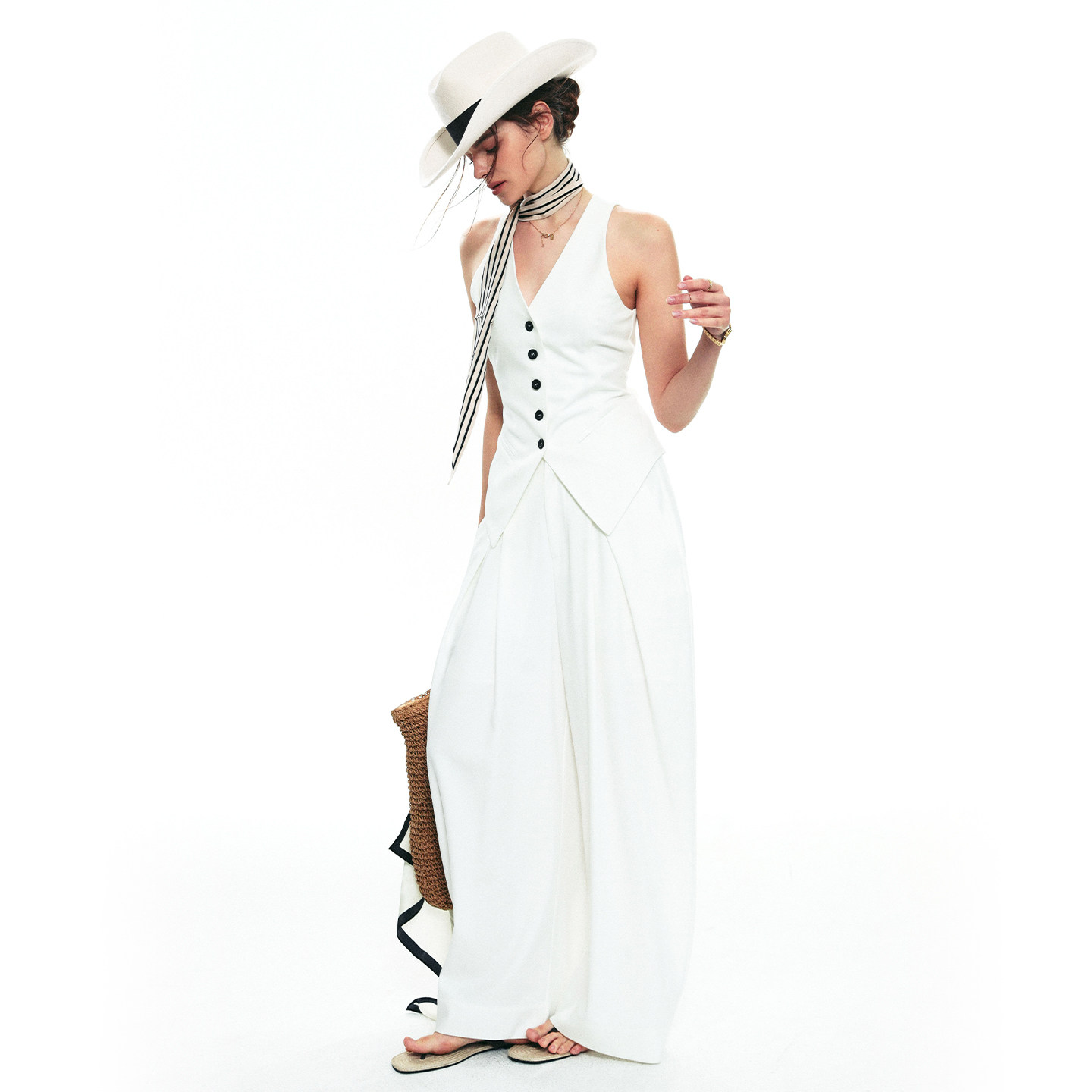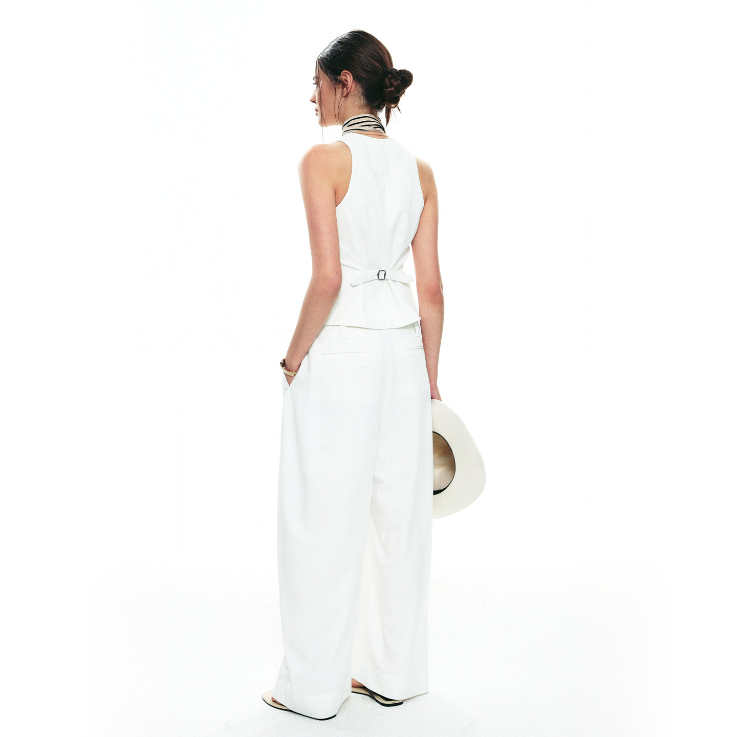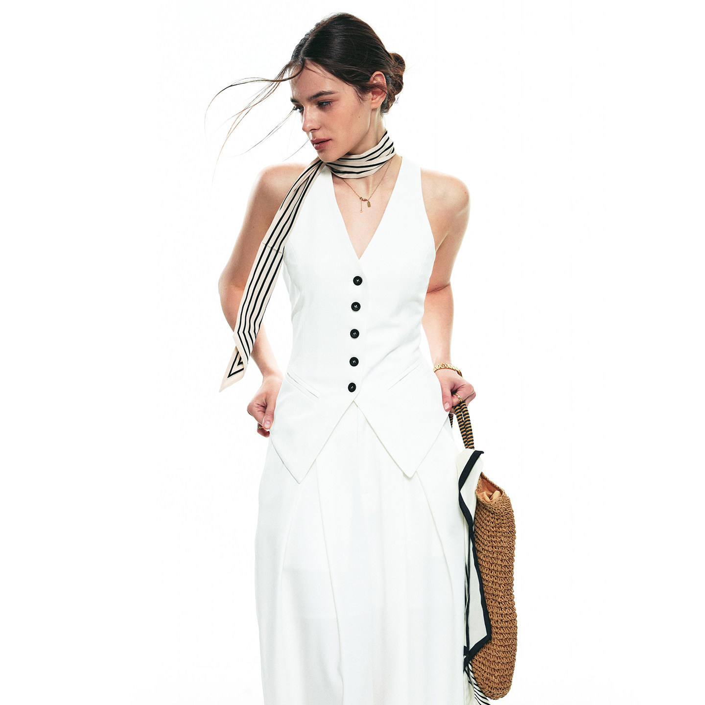 法式 新款 v领无袖 设计休闲修身 SINGLE 马甲白色套装 MOMENT25SS秋季