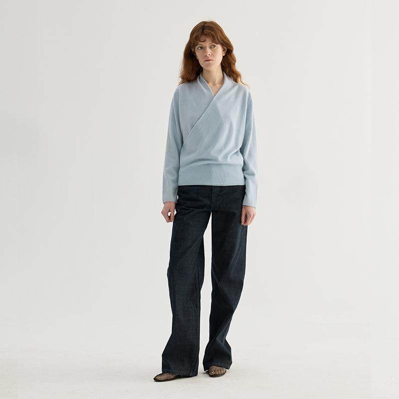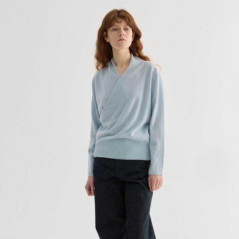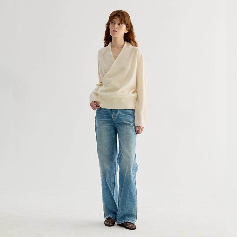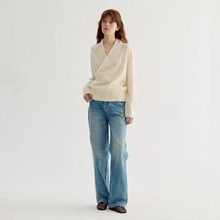 NOON设计感交叉V领美利奴羊毛衣2025春季 XM264 温柔感软糯针织衫