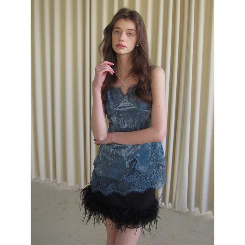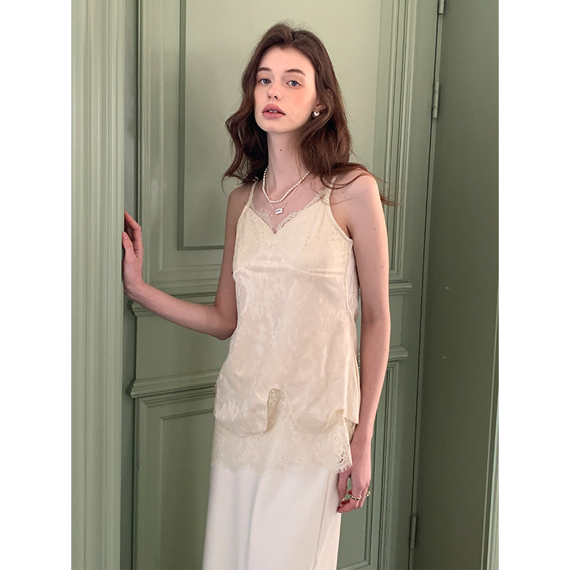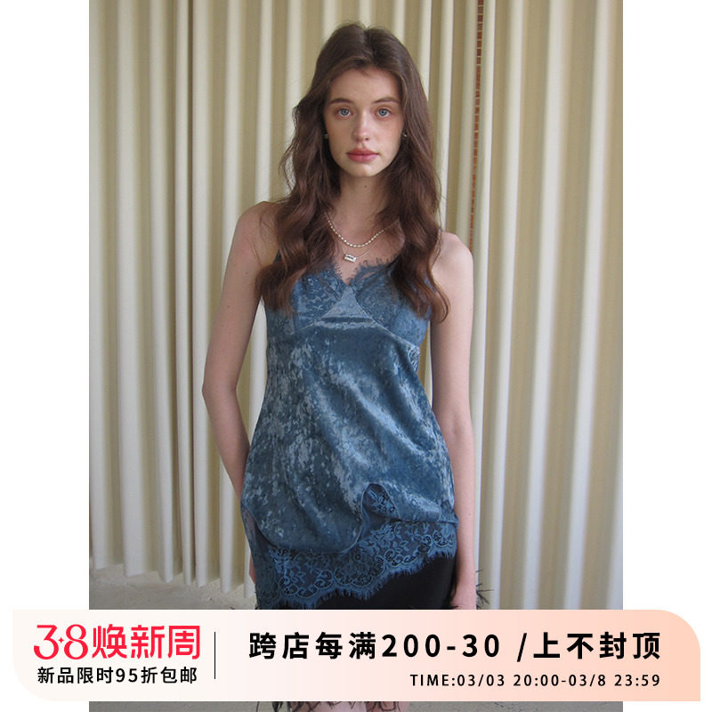 竹依依两色重工丝绒吊带背心女春季 气质蕾丝拼接上衣 高级感修身